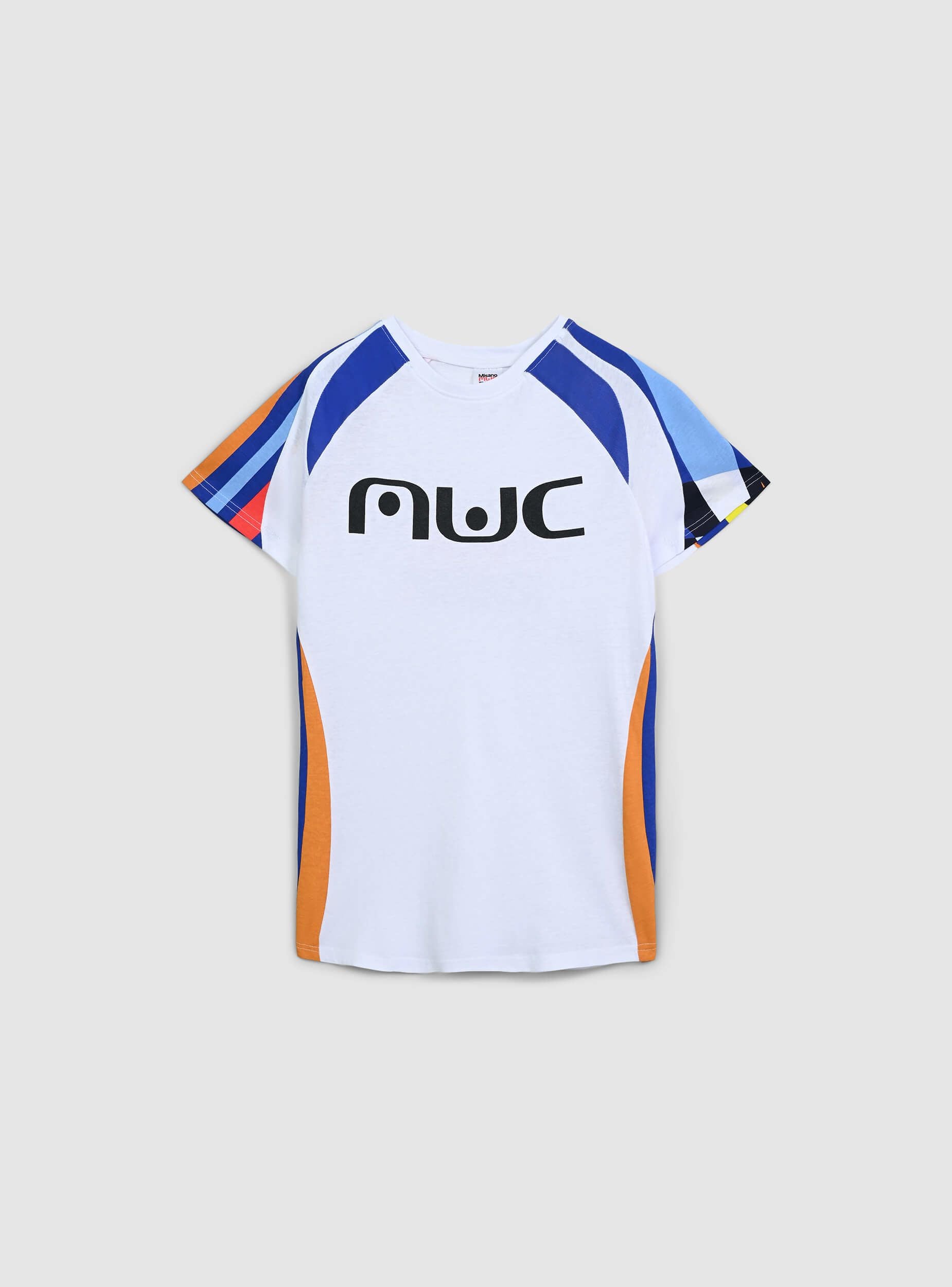 T-shirt with strip and MWC print front/back - Var optical whiteico