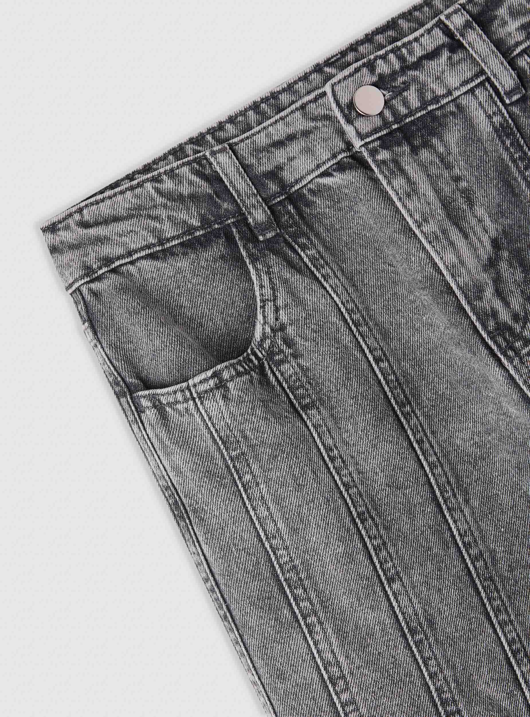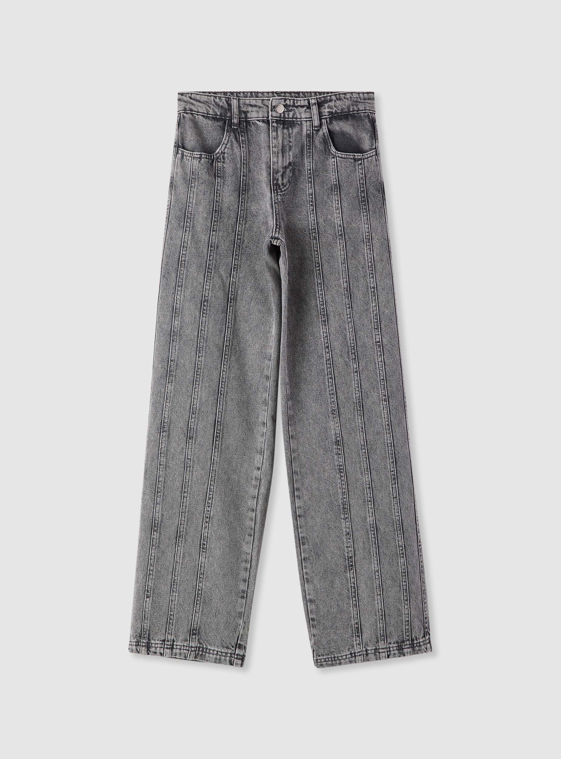 Girls' wide-leg ankle-length jeans in a solid colour with a worn wash. Five-pocket style with belt loops and button-and-zip fastening, enhanced by vertical topstitching that elongates the silhouette. Perfect for school and leisure, they pair well with a T-shirt and trainers for a casual look or with a hooded sweatshirt for a comfortable outfit.Details