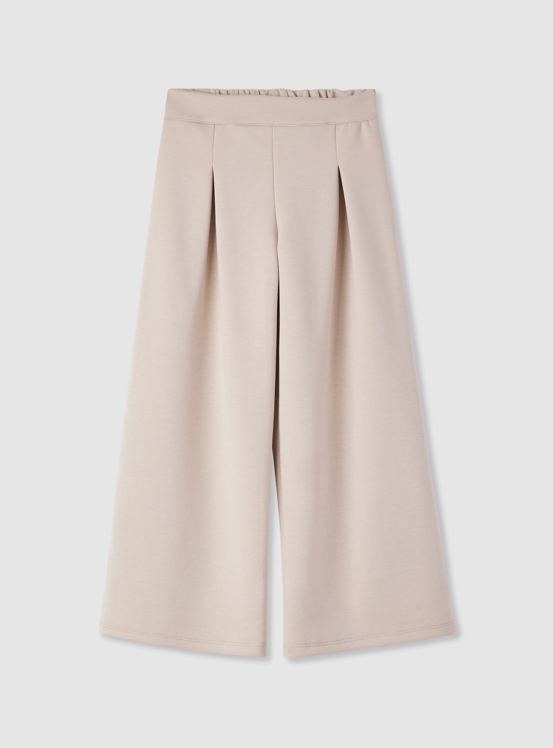 Plain-coloured girls' trousers, perfect for everyday looks and casual occasions. Elasticated waistband at the back for comfort. The wide leg with front pleats adds movement and a comfortable fit. Easy to pair with a T-shirt and trainers or with a shirt for a smart outfit.