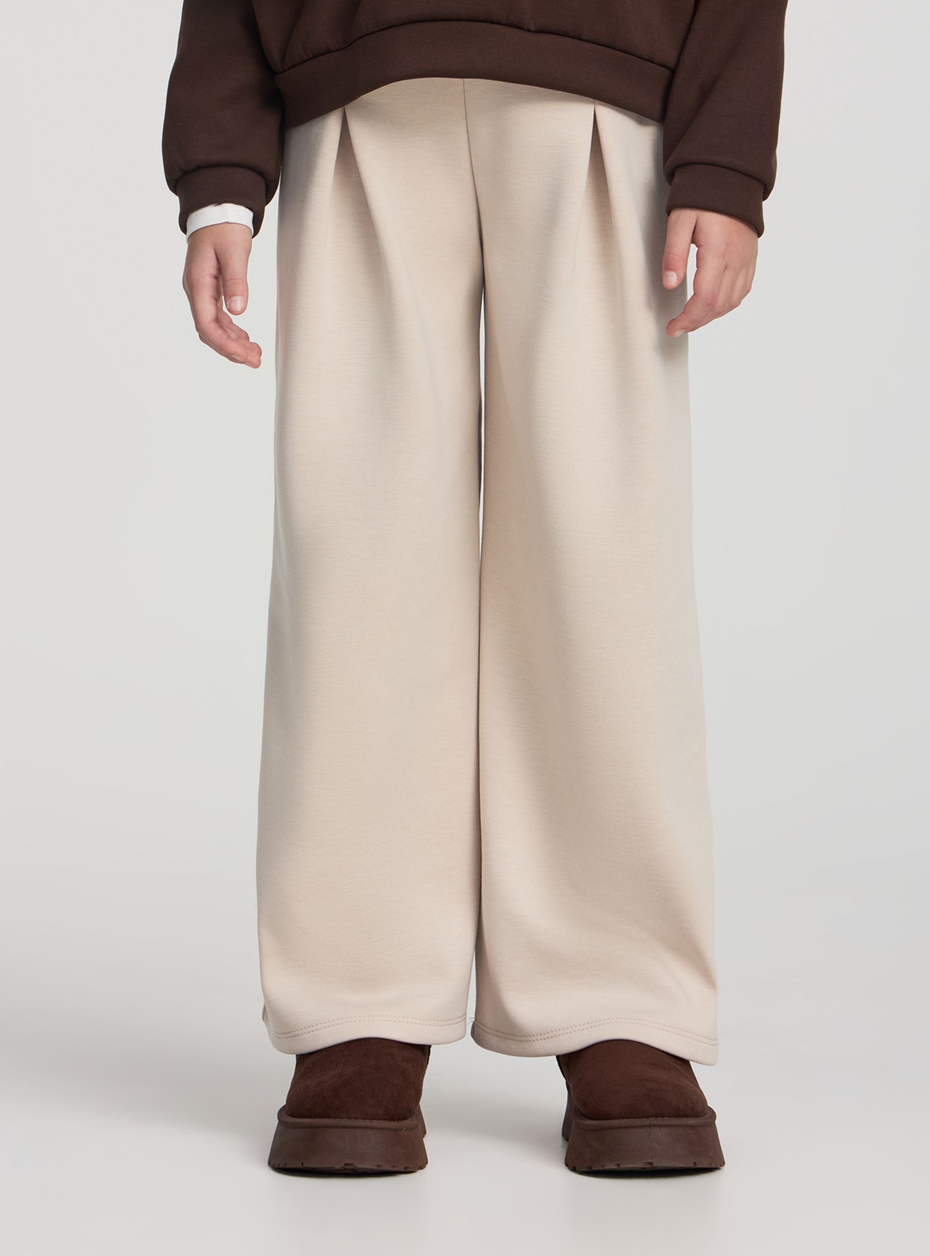 Wide-leg trousers with pleats - Beige