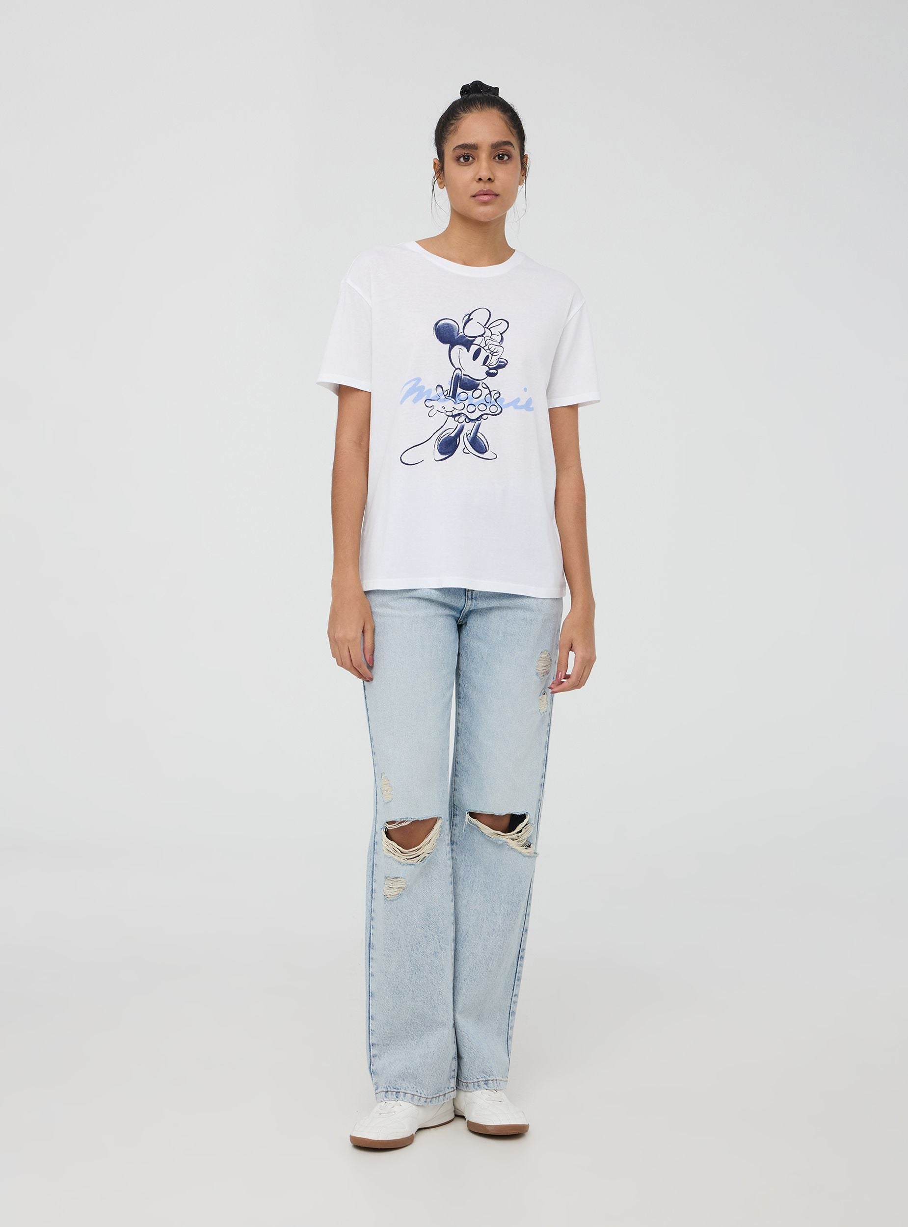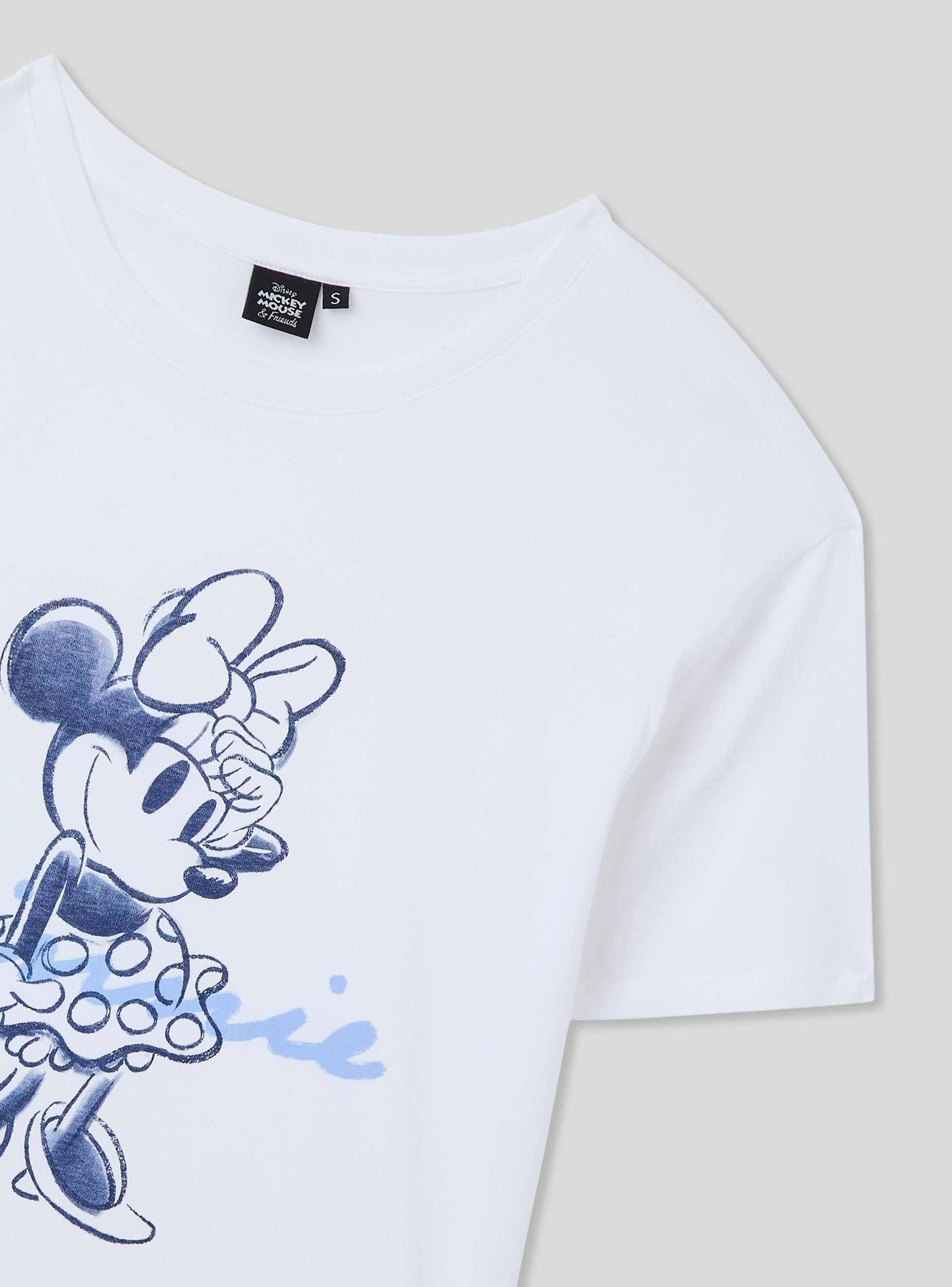Women's t-shirt with a crew neck and short sleeves, featuring a vibrant Minnie® print on the front. The design adds a playful and iconic touch to the piece, perfect for those seeking a casual and fun look. The loose and comfortable fit makes this t-shirt ideal for informal days, with a detail that does not go unnoticed.Details
