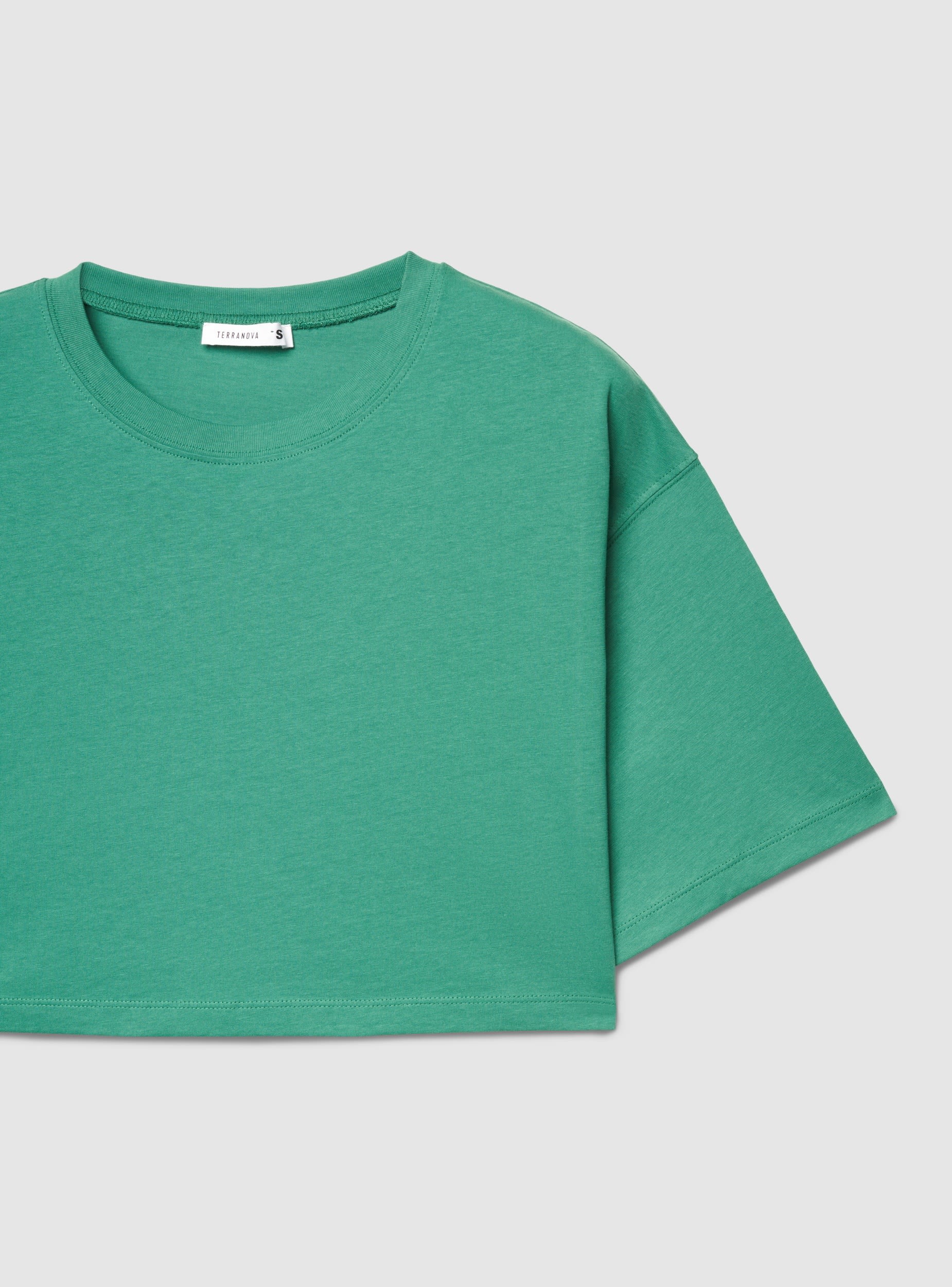 Wide solid-colour crop T-shirt - Green