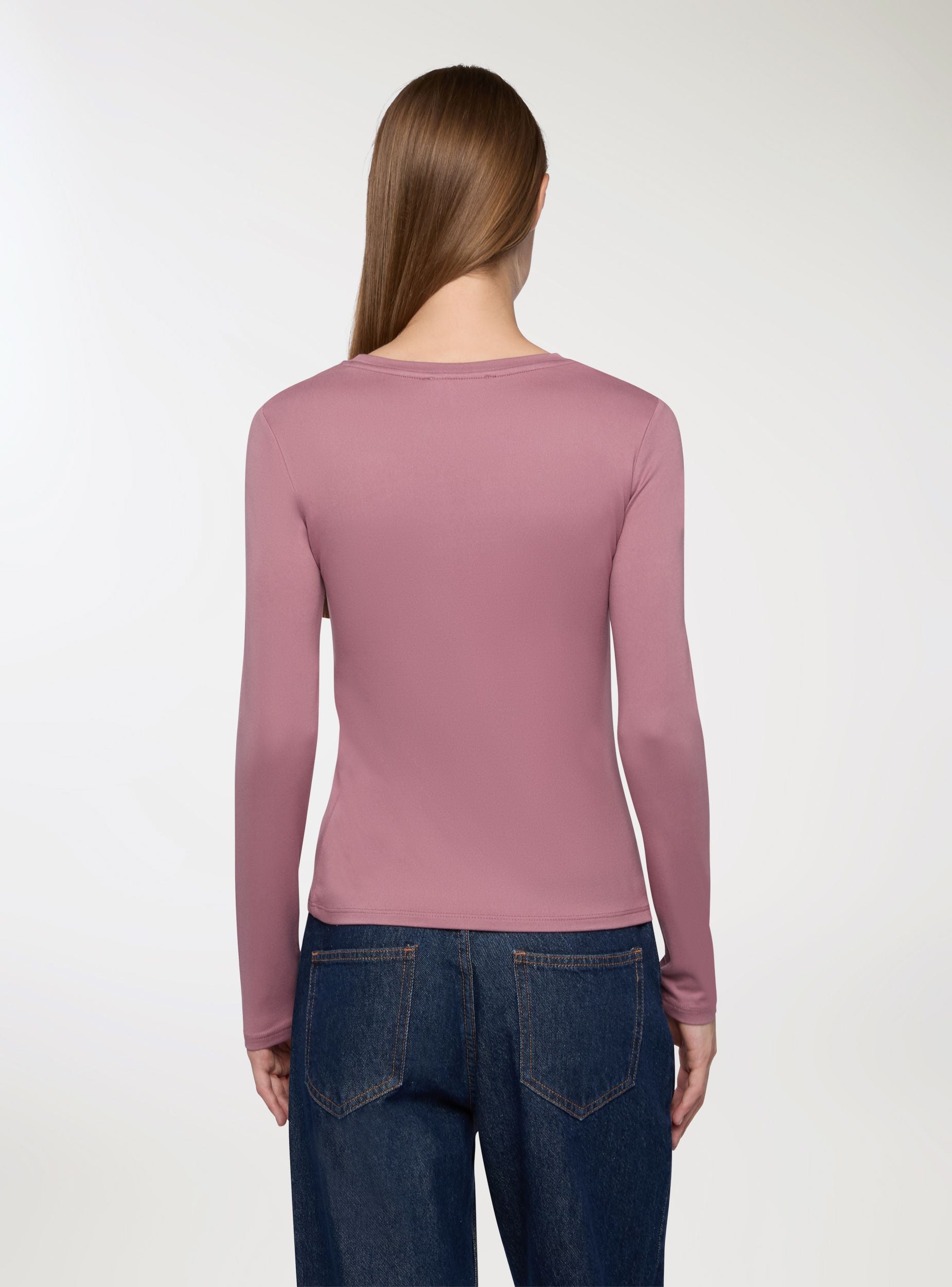 Women's basic long-sleeve top in stretch fabric. Perfect for every season, this top is a must-have in your wardrobe. Characterised by a minimalist design and solid colour, it features long sleeves and a comfortable crew neck. The stretch fabric ensures a snug and comfortable fit, naturally following the body's contours. Ideal for wearing alone in casual looks or as a layer under jackets, blazers, or cardigans during the colder months, it easily adapts to any occasion, from the office to leisure time. A versatile piece that combines simplicity and practicality for a consistently polished style.Details