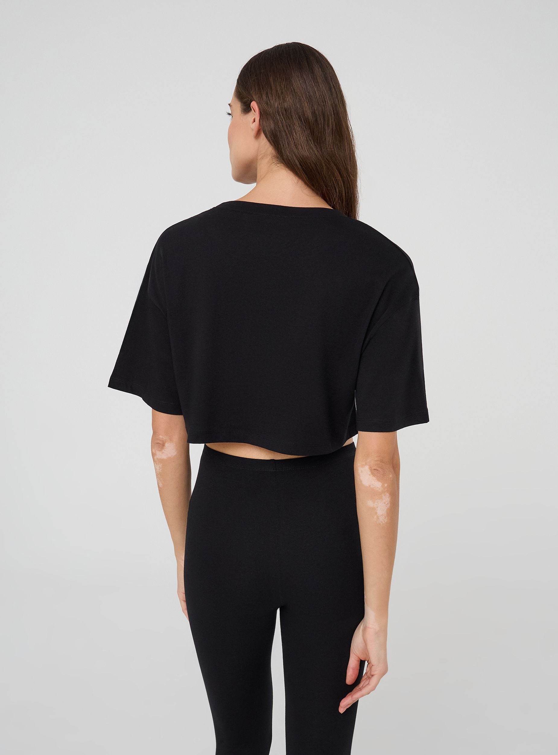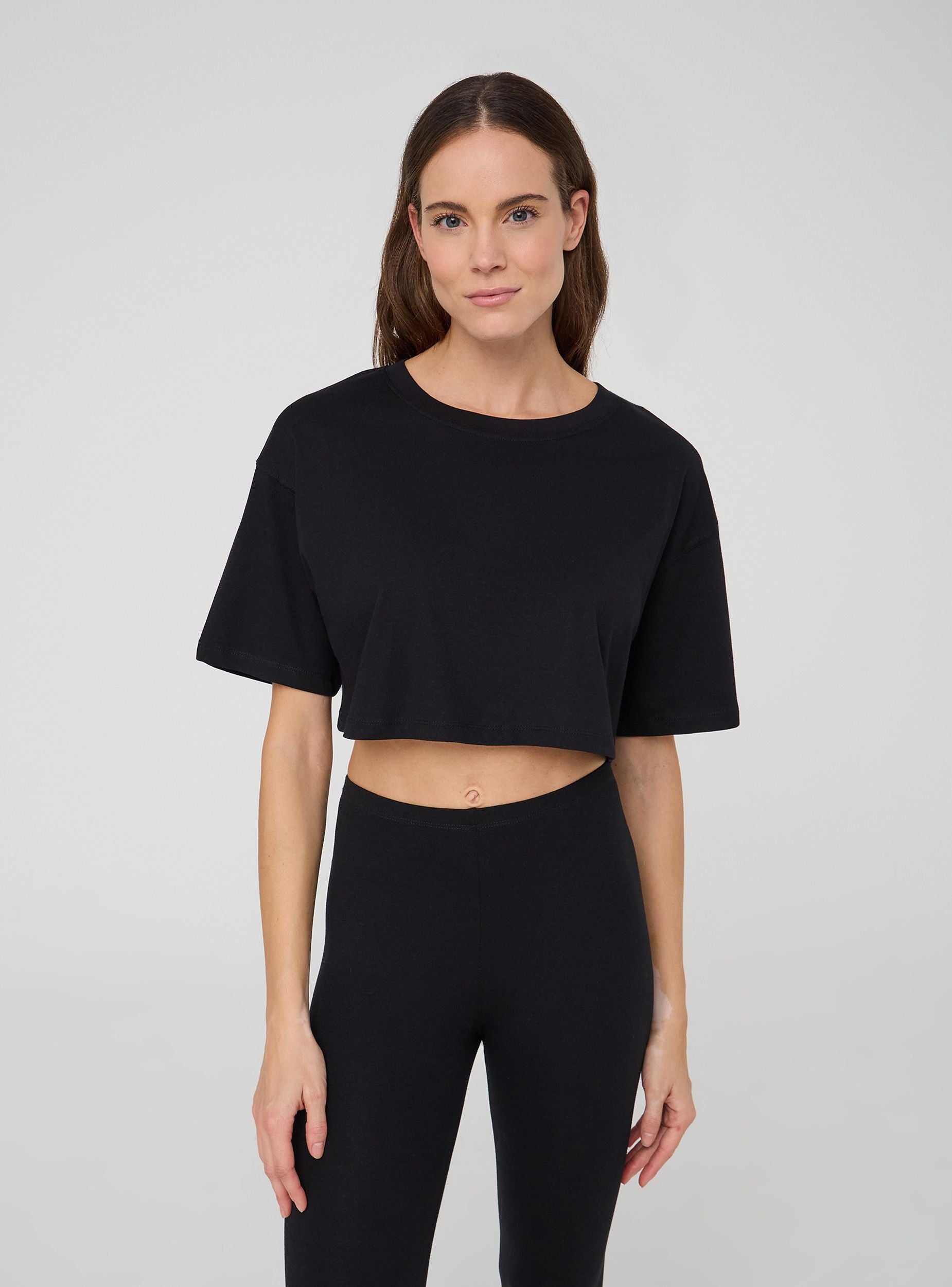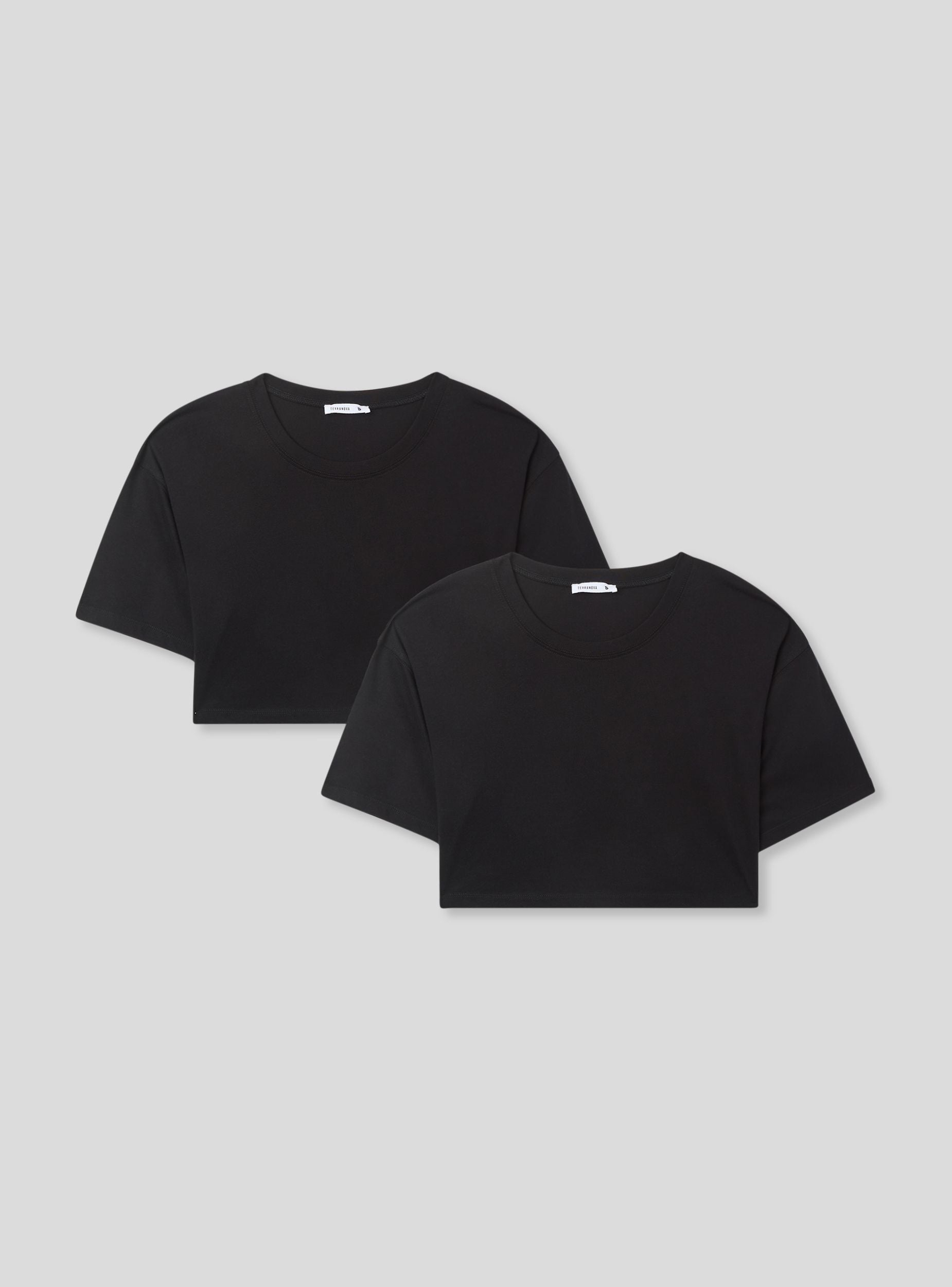 Pack consisting of two women's plain t-shirts with a cropped cut and loose fit. The short design and wide sleeves make these t-shirts ideal for a casual and relaxed look, perfect for pairing with high-waisted items or for a laid-back summer style.Details