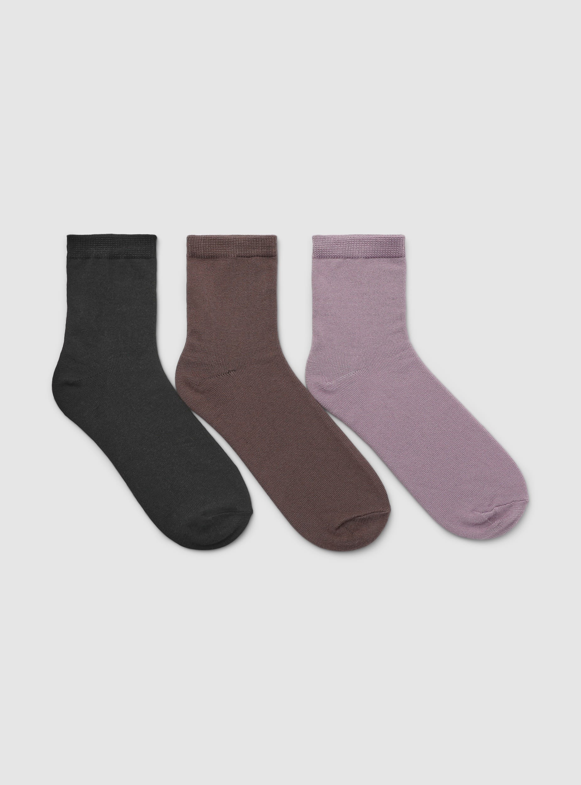 Women's socks ideal for a casual and comfortable look. Pack of three pairs of heavy plain socks, perfect for everyday use. Standard design with medium length, suitable for various occasions. Easily paired with sports or casual shoes, ensuring comfort and practicality. Ideal for completing informal outfits and leisurewear.Details