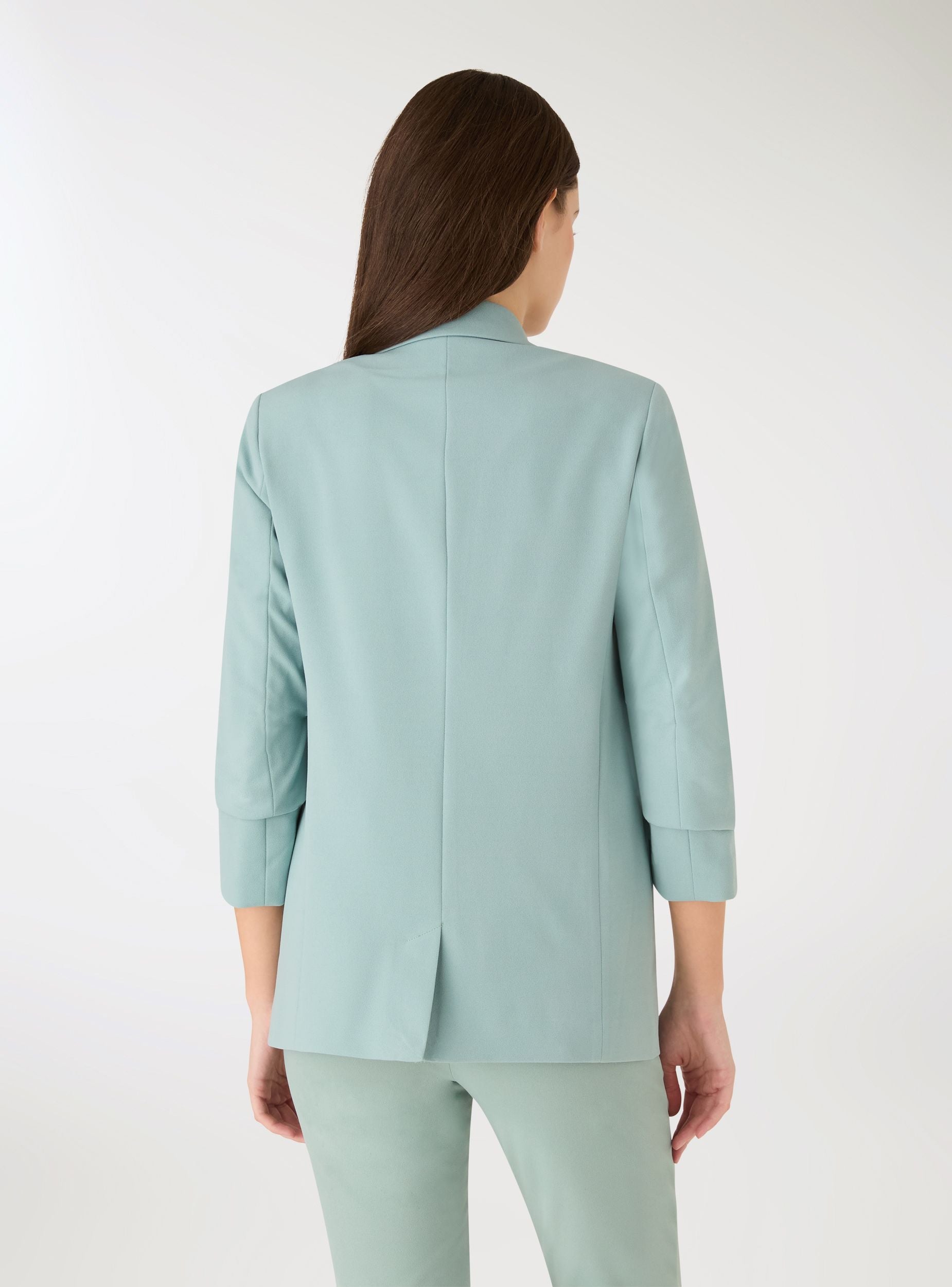 Solid-colour women's jacket with an oversized cut and open front, ideal for adding structure to urban and elegant looks. Notched lapel, three-quarter sleeves with cuffs, and a length that grazes the hips. Fully lined, perfect over a T-shirt or shirt and to pair with jeans or tailored trousers. Side welt pockets without closures. Soft silhouette that enhances office outfits, evening appointments, and ceremonies.Details