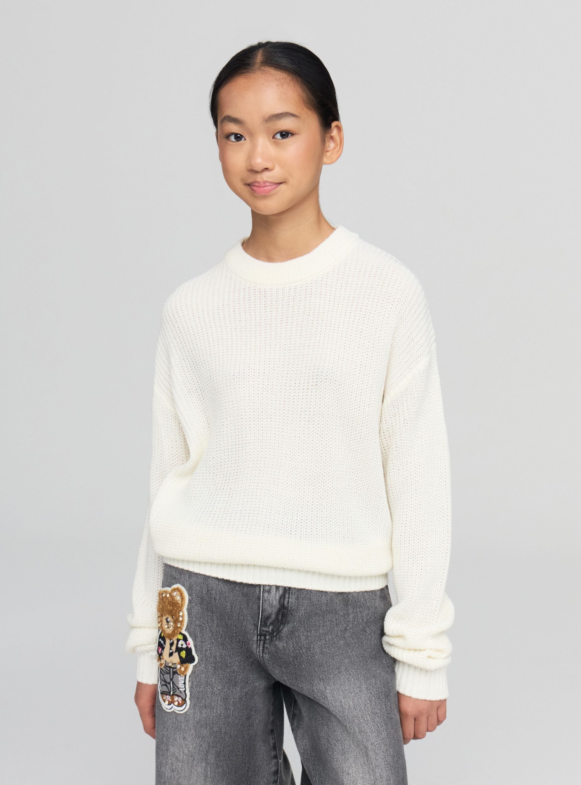Girl's jumper ideal for the cooler season, featuring a ribbed texture that adds a modern and versatile touch. The model has a regular fit, long sleeves, and a mock neck, perfect for wearing both at school and during leisure time. Easy to pair with jeans or skirts, it suits multiple everyday occasions, offering comfort and timeless style.Details