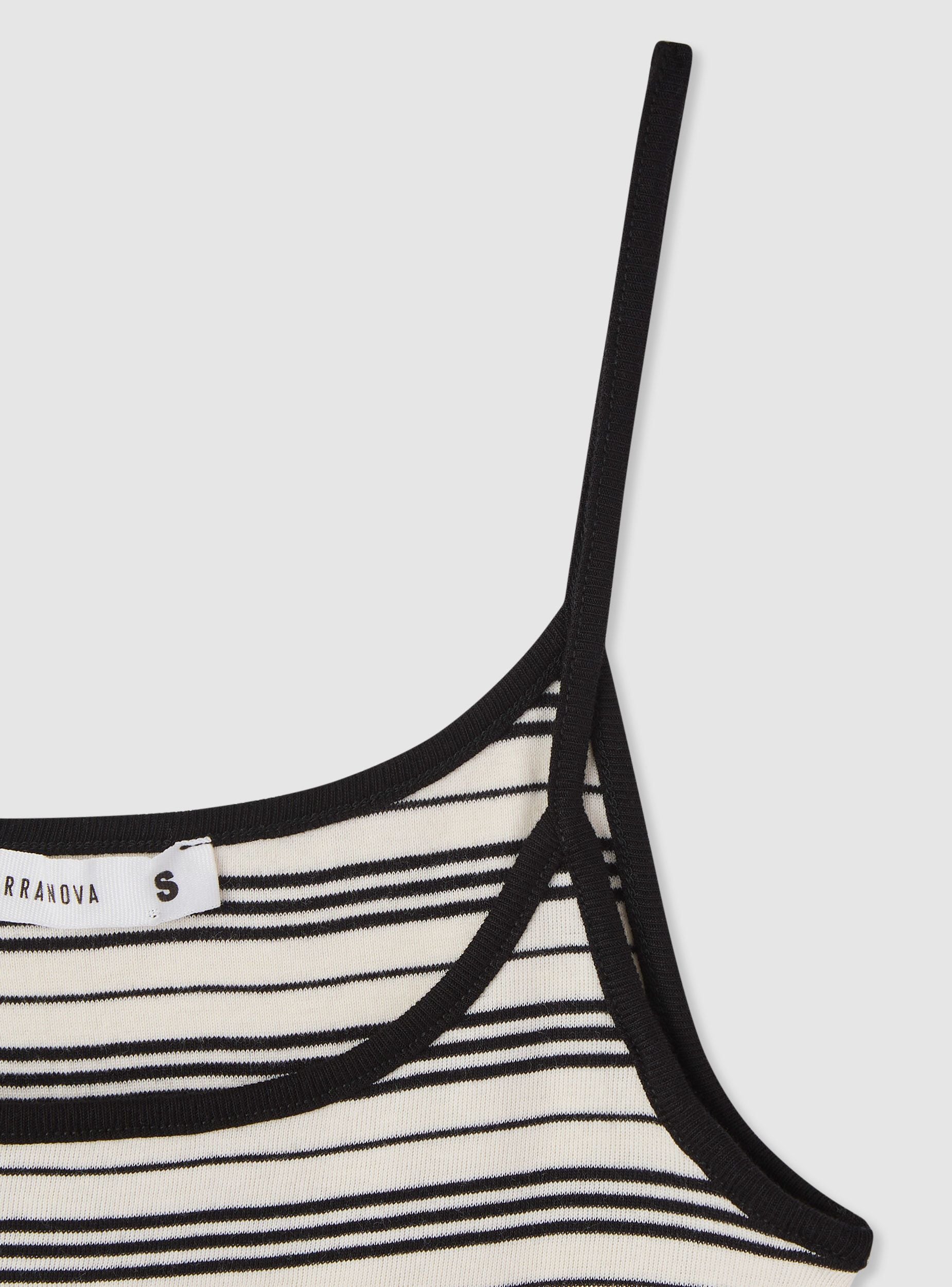 Women's striped tank top, ideal for casual and urban looks. The design with thin straps and a round neckline enhances the décolleté, perfect to wear under light shirts or with high-waisted jeans and skirts. The fit is regular and the straight cut follows the silhouette. A versatile top for leisure time, also suitable as a base layer in layered outfits.Details