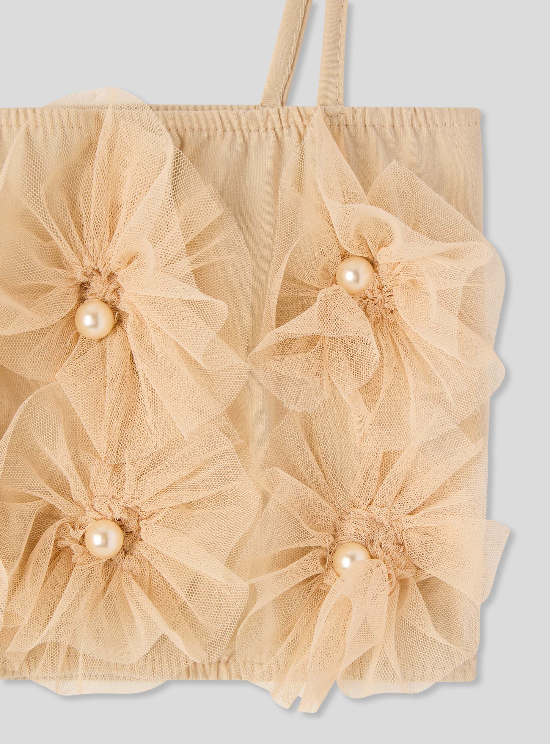 Girls' top with raised floral decorations. Ideal for special occasions, this garment stands out for its elegant design and refined details. Perfect to pair with skirts or trousers for a sophisticated and unique look. The thin straps add a delicate touch, while the regular fit ensures comfort and style.Details