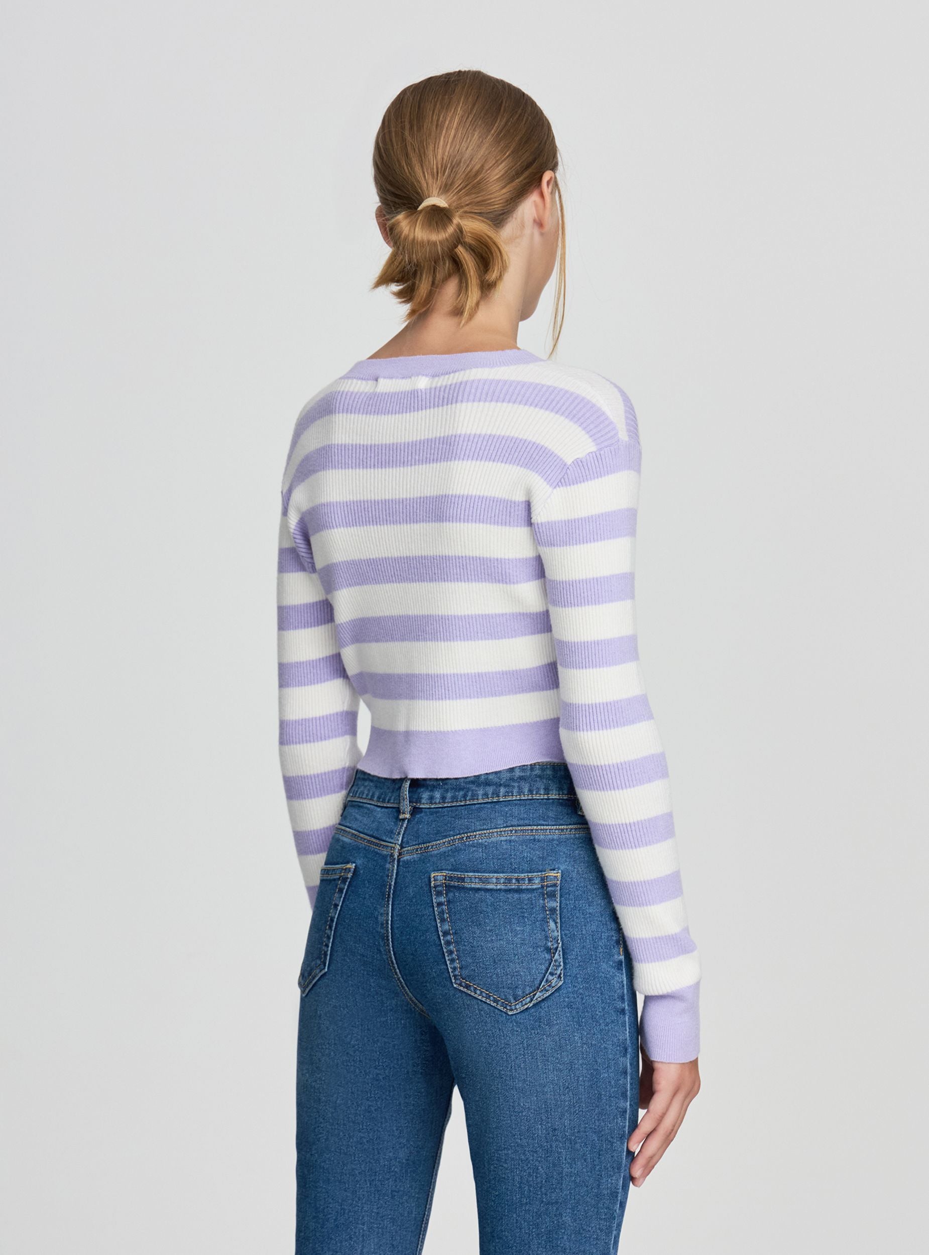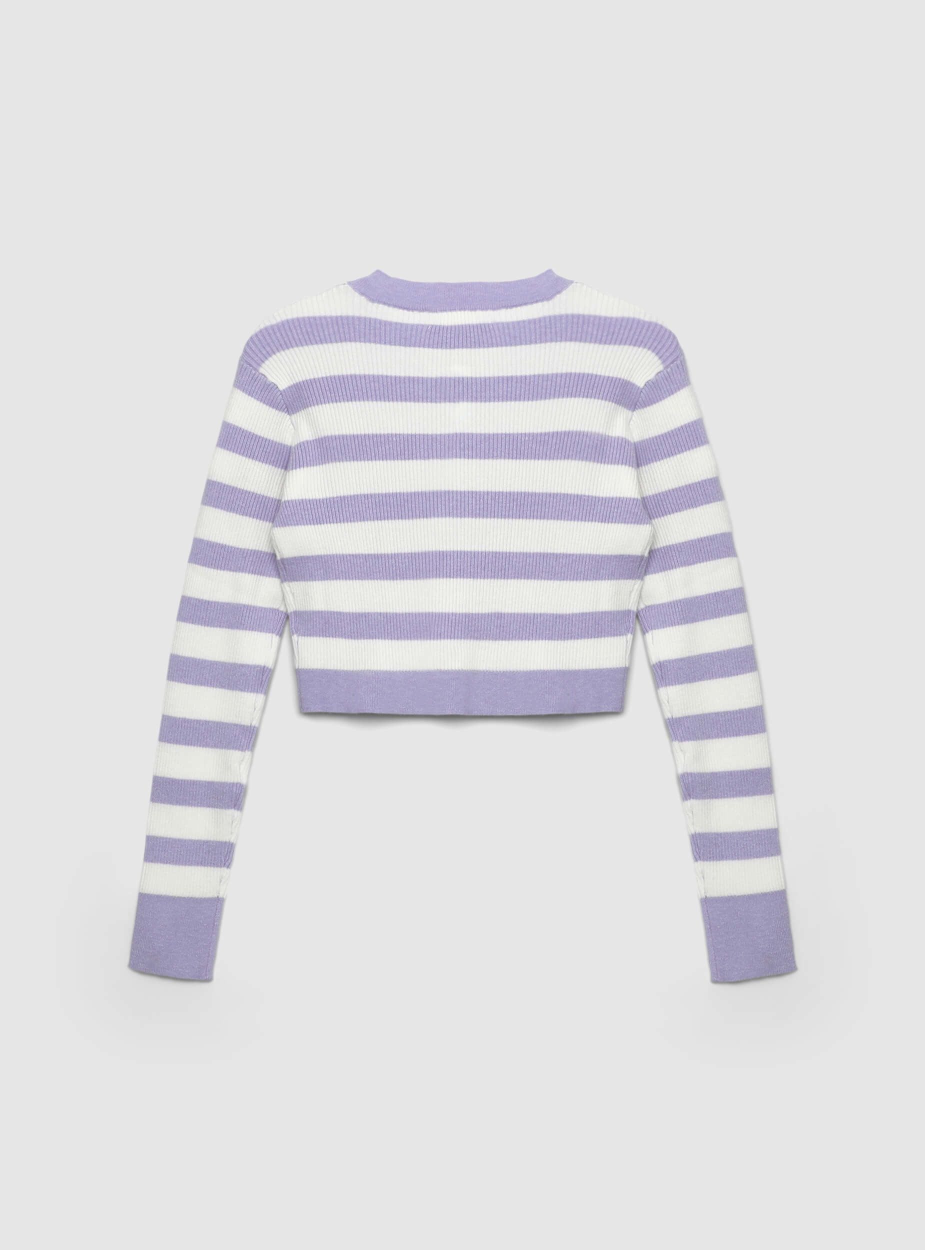 Camiseta de niña de manga larga, perfecta para looks casuales y versátiles. El diseño cropped realza los outfits modernos, ideal para combinar con jeans o faldas de cintura alta. El cuello redondo y el tejido de canalé ofrecen comodidad y un ajuste ceñido. El estampado a rayas añade un toque dinámico, haciendo que esta camiseta sea adecuada tanto para la escuela como para el tiempo libre.Detalles