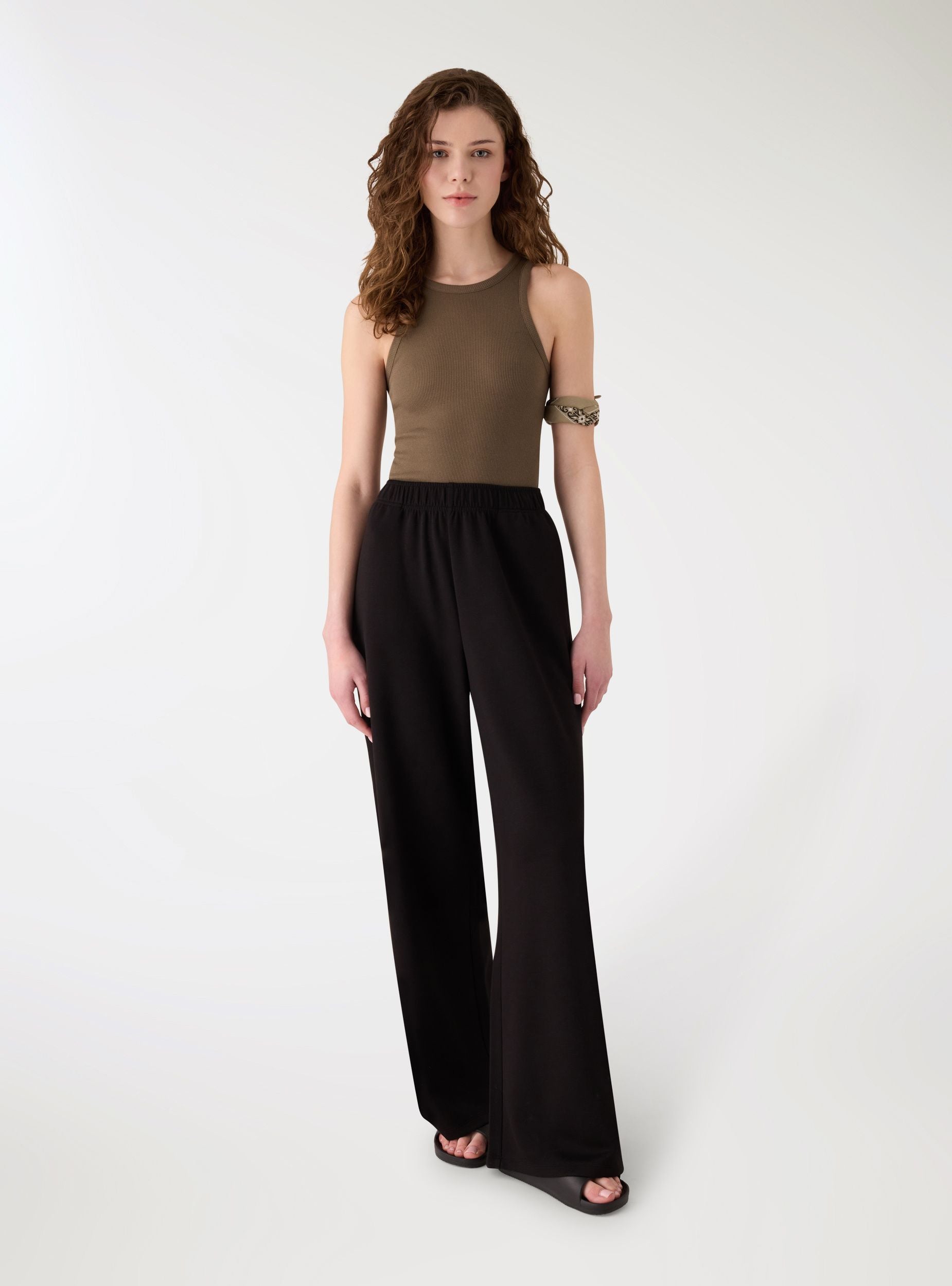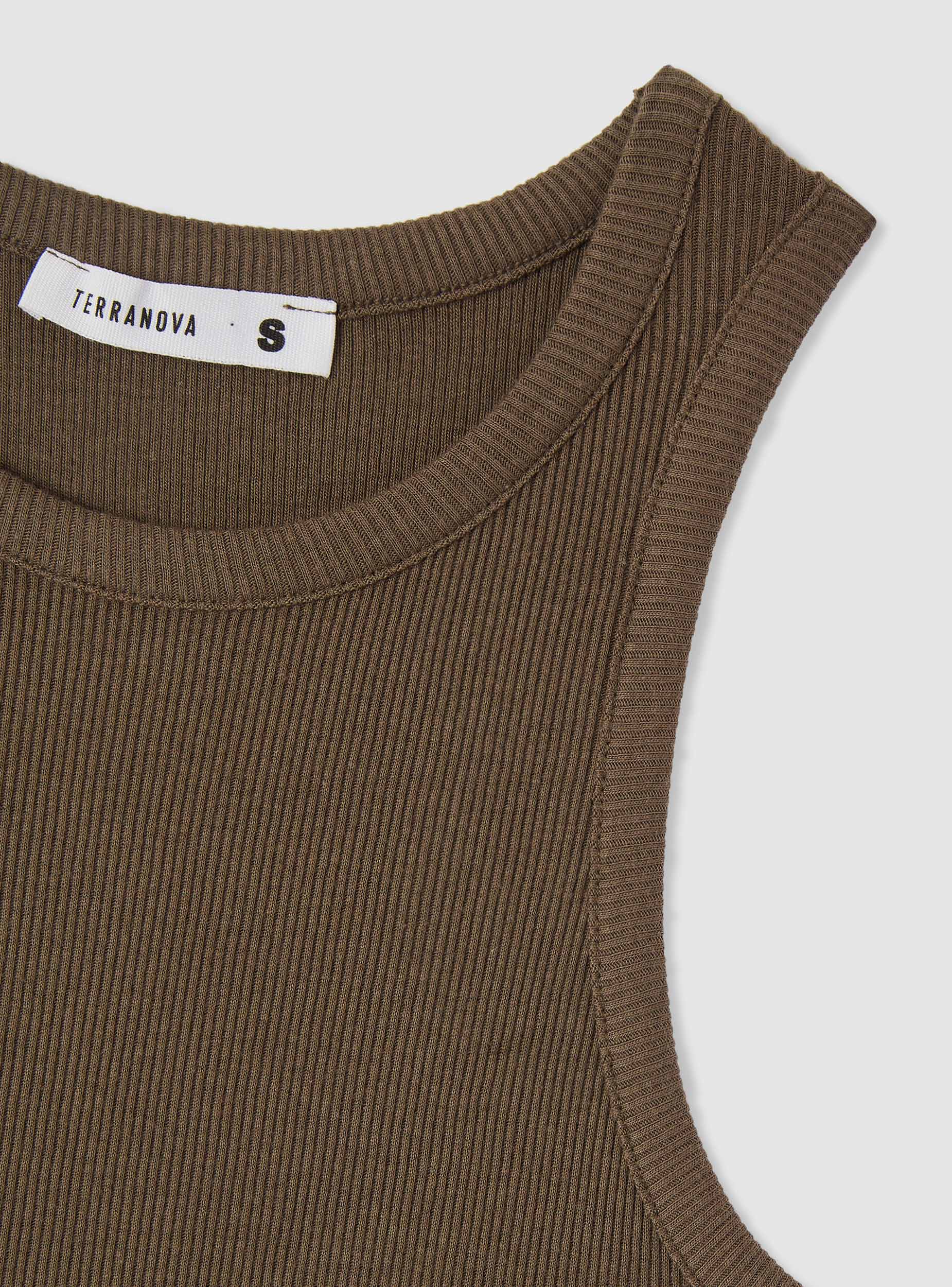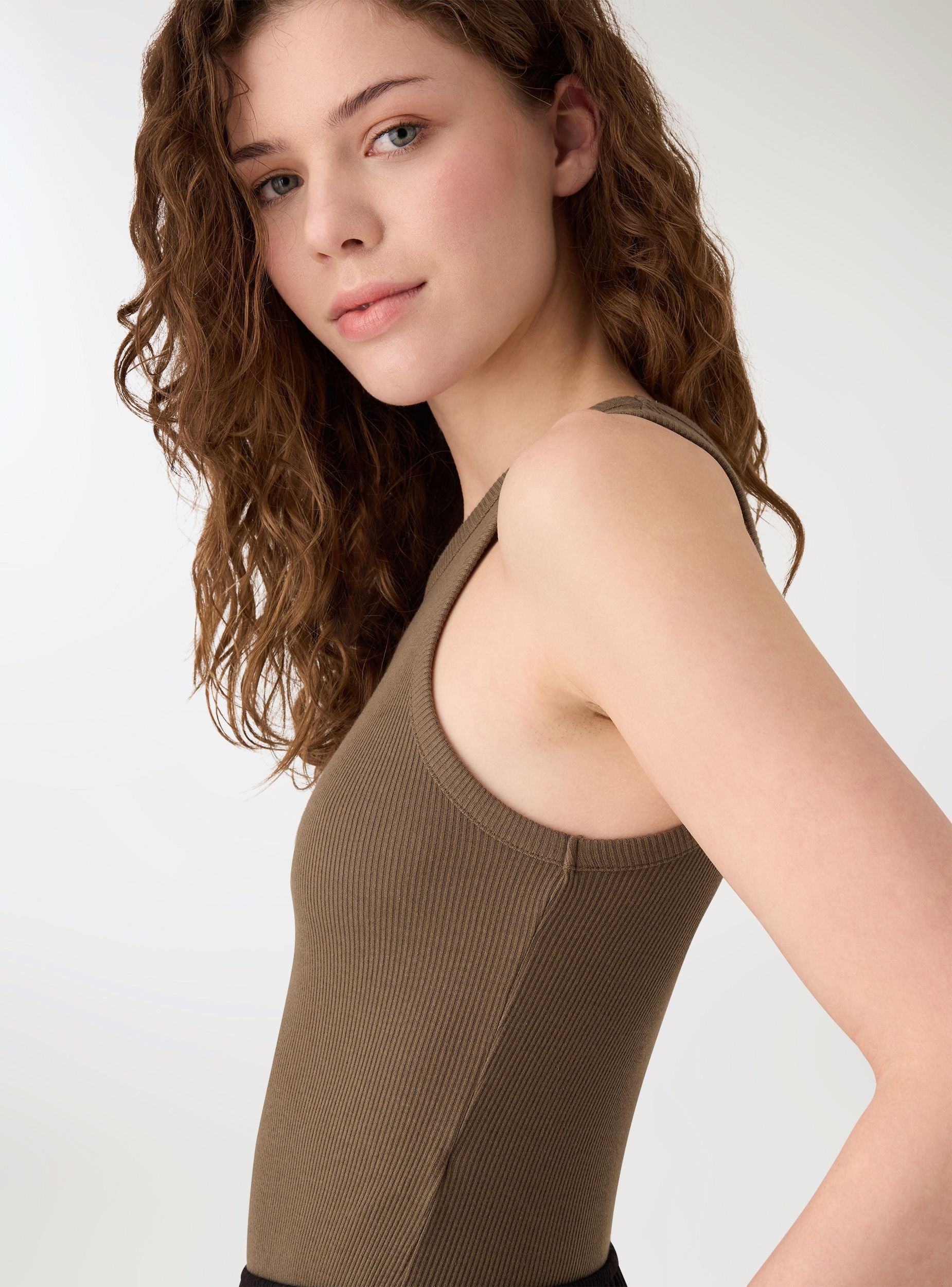 Camiseta de mujer lisa con tejido de canalé, ideal para looks casuales y diarios. Modelo sin mangas con cuello redondo y hombros anchos, ajustada y fácil de combinar con vaqueros, pantalones deportivos o faldas para crear conjuntos en capas bajo camisas o chaquetas. Longitud normal y diseño esencial que realza la silueta, perfecta también como base para superposiciones en cualquier estación.Detalles