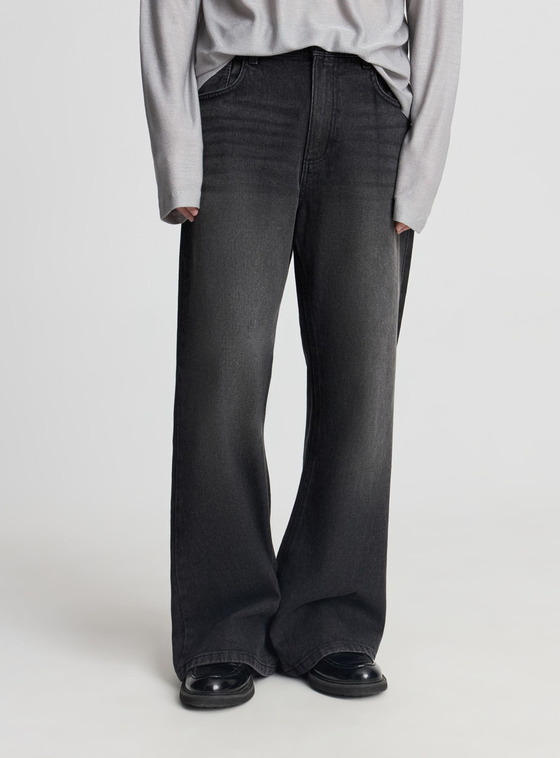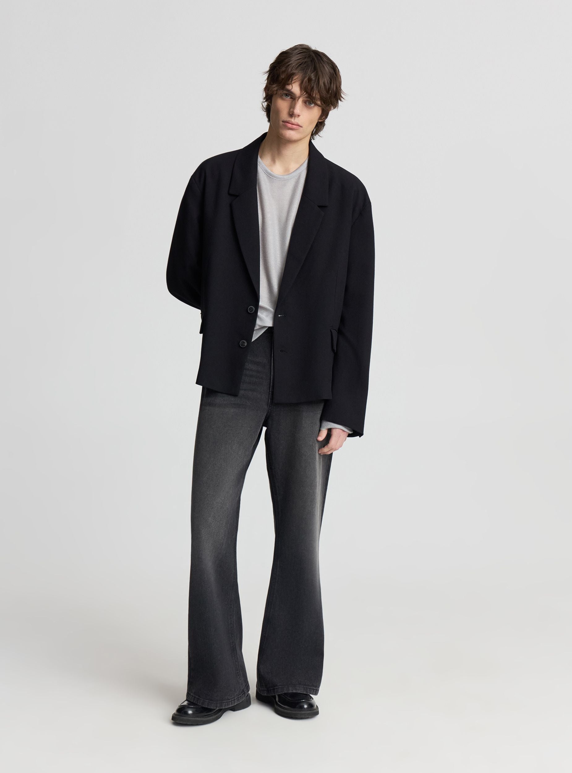 Jeans de hombre modelo flare, perfectos para un look casual y urbano. Cierre con botón y cremallera, cinco bolsillos. Lavado denim oscuro con efecto acid wash que realza la línea amplia en el bajo. Ideales con camiseta y zapatillas para el tiempo libre o con camisa y botines para un conjunto más cuidado.Detalles