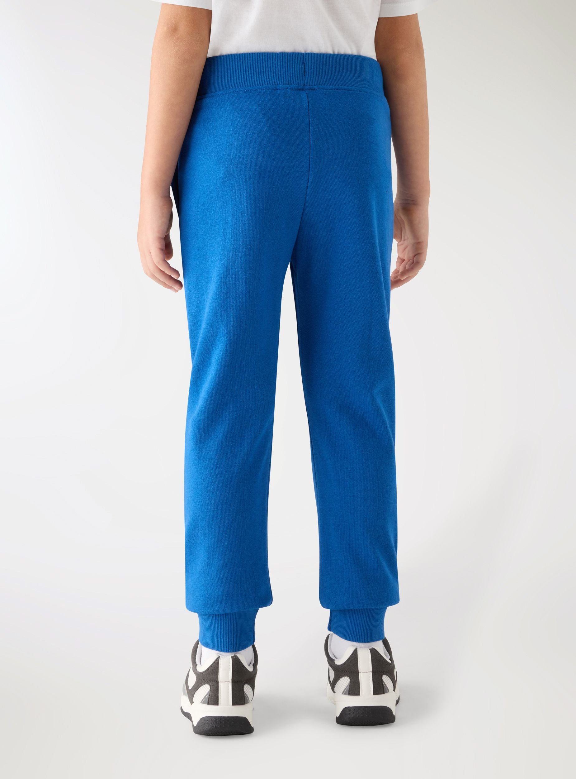 Pantalones de chándal para niño en color liso con estampado lateral. Modelo largo con puños en el tobillo y cintura con cordón, ideal para la escuela y el tiempo libre. Bolsillos laterales incorporados para mayor practicidad, ajuste regular y pierna recta. Fáciles de combinar con camiseta y sudadera para un look deportivo y casual. Tejido ligero.Detalles