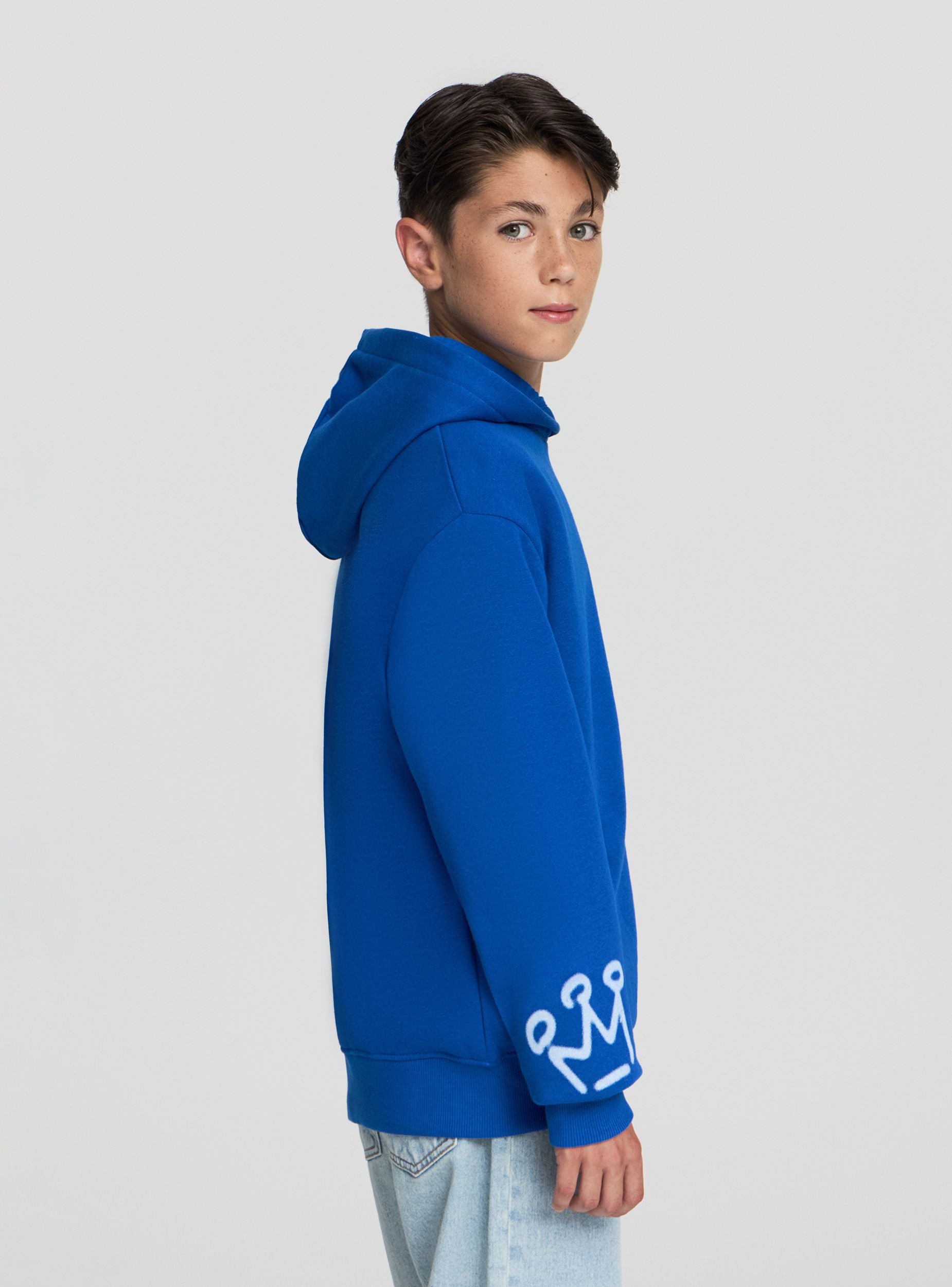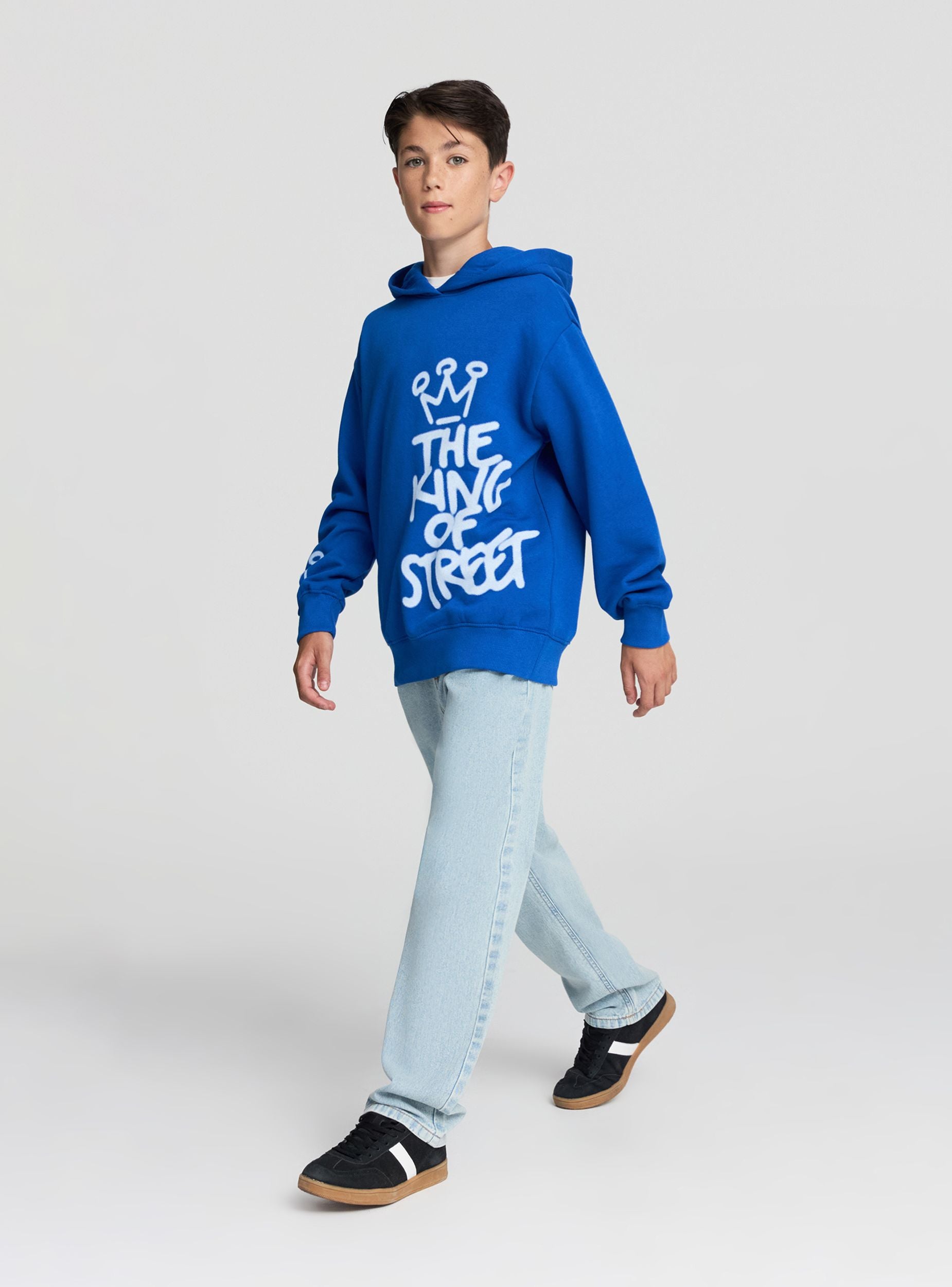 Sudadera pesada para niño con capucha, modelo cerrado sin cremallera, ideal para un look casual y urbano. Perfecta para los días más frescos, esta sudadera ofrece comodidad y estilo gracias al diseño con escritura en estilo graffiti. Se combina fácilmente con jeans o pantalones deportivos para un atuendo práctico y a la moda. La presencia de la capucha añade un toque moderno y funcional, haciéndola adecuada para diversas ocasiones informales.Detalles