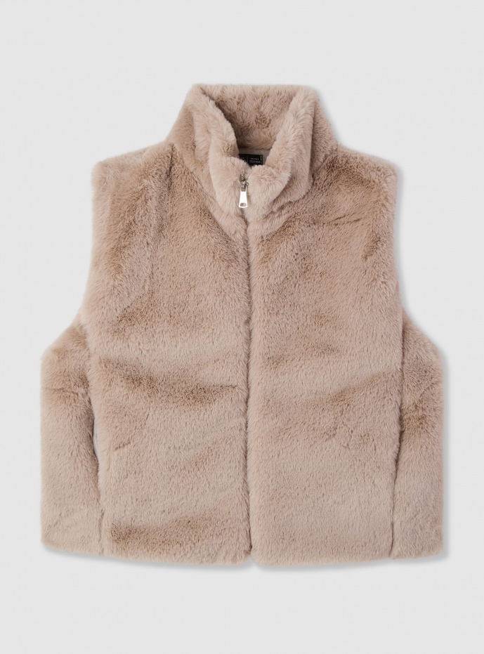 Chaleco para niña, ideal para aportar un toque suave a los conjuntos diarios. Corte regular con cuello alto y cierre frontal con cremallera, acabado en color liso con efecto peludo que aporta suavidad y comodidad. Fácil de llevar sobre camisetas o sudaderas para la escuela y el tiempo libre. Una prenda versátil para looks de capas a la moda.
