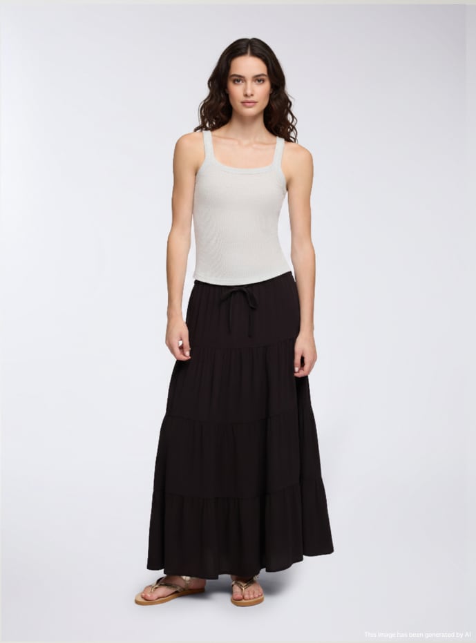 Falda larga con volantes y cordón ajustable Negro