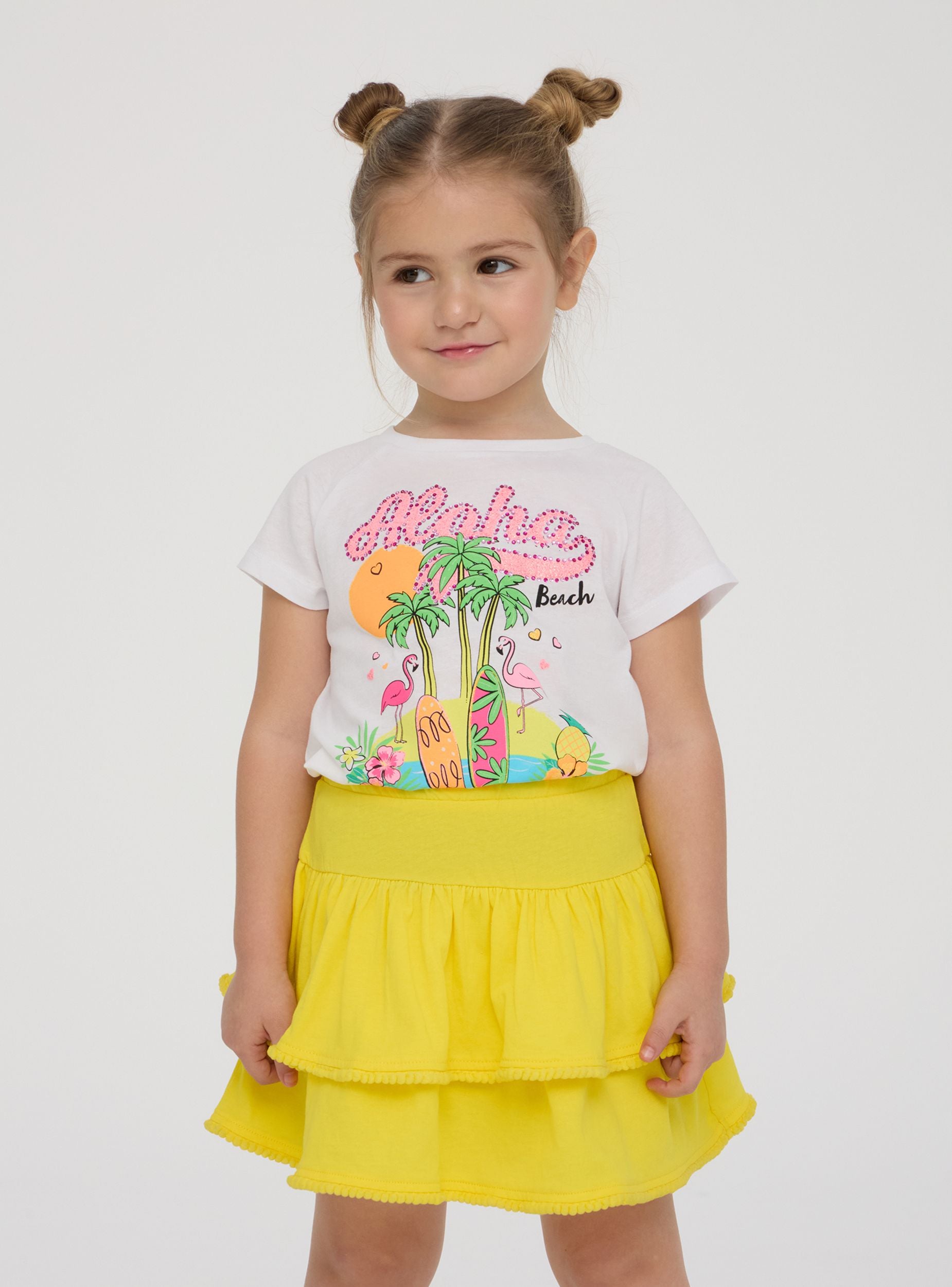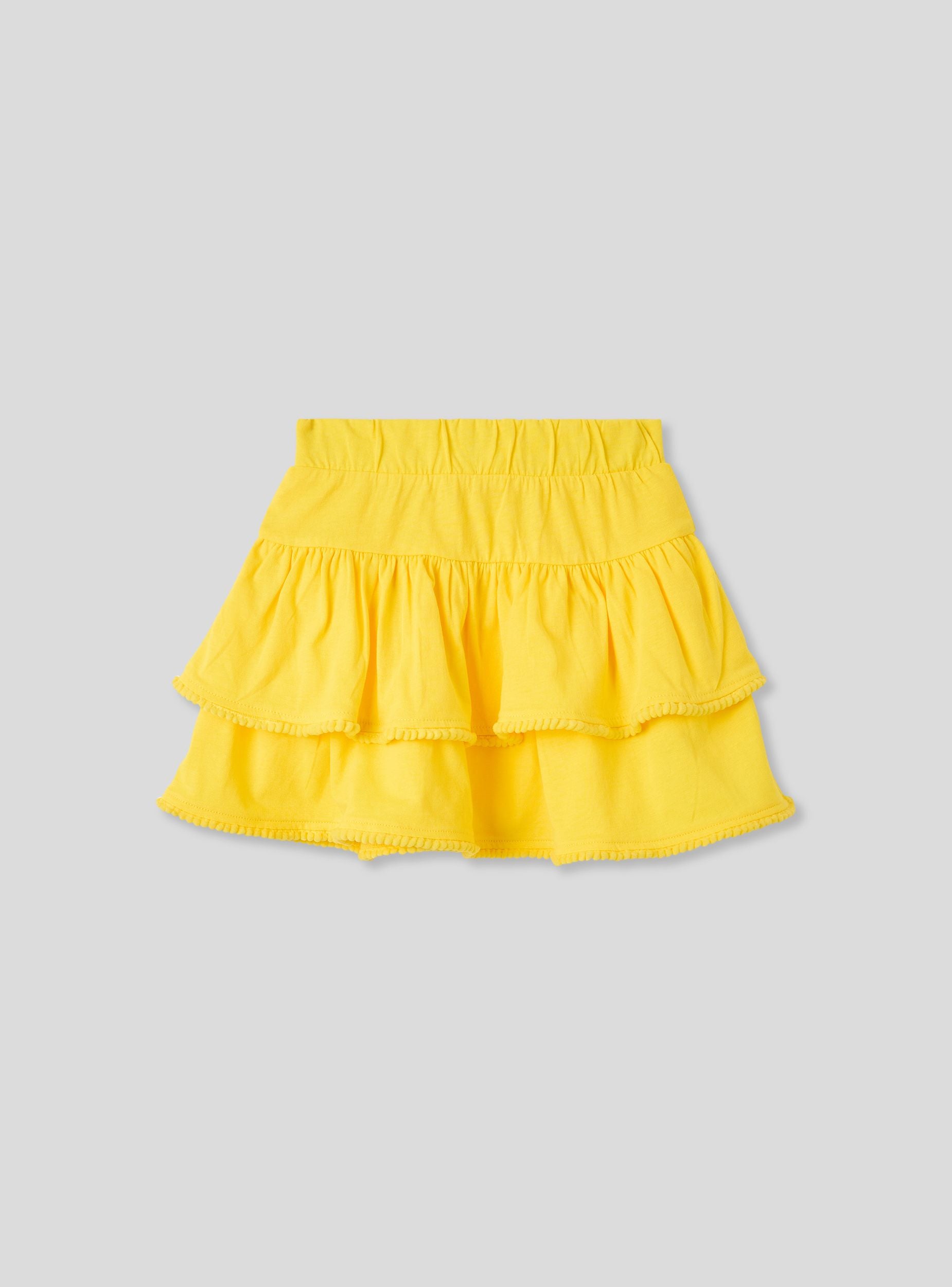 Jupe courte avec volants et pompons - Jaune