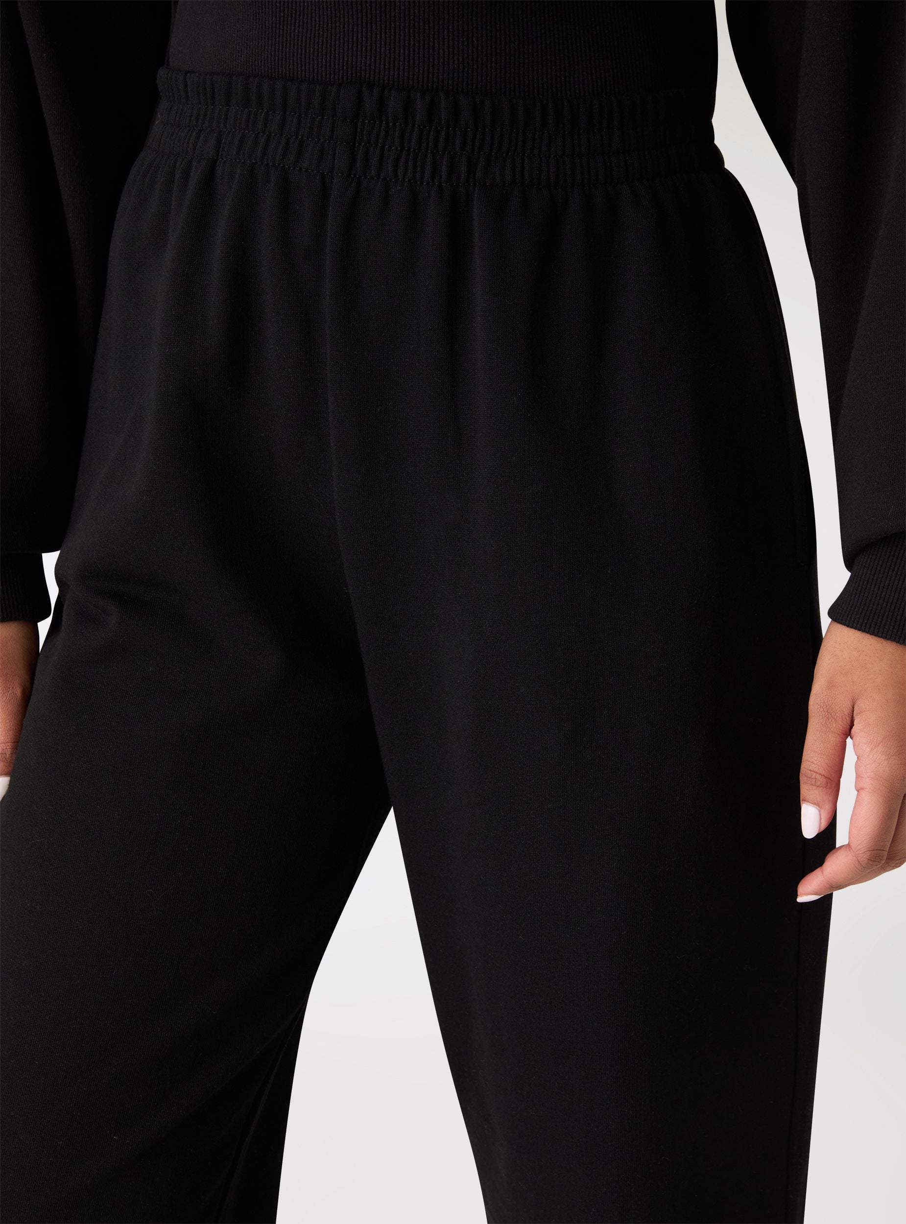 Pantalons de sport pour femme unis, idéaux pour les loisirs et les activités légères. Taille haute élastiquée et bas de jambes avec poignets élastiques. Coupe régulière et ligne fluide pour bouger en toute liberté. Poches latérales. Parfaits avec un sweat à capuche ou un t-shirt et des baskets pour un look décontracté et urbain.Détails