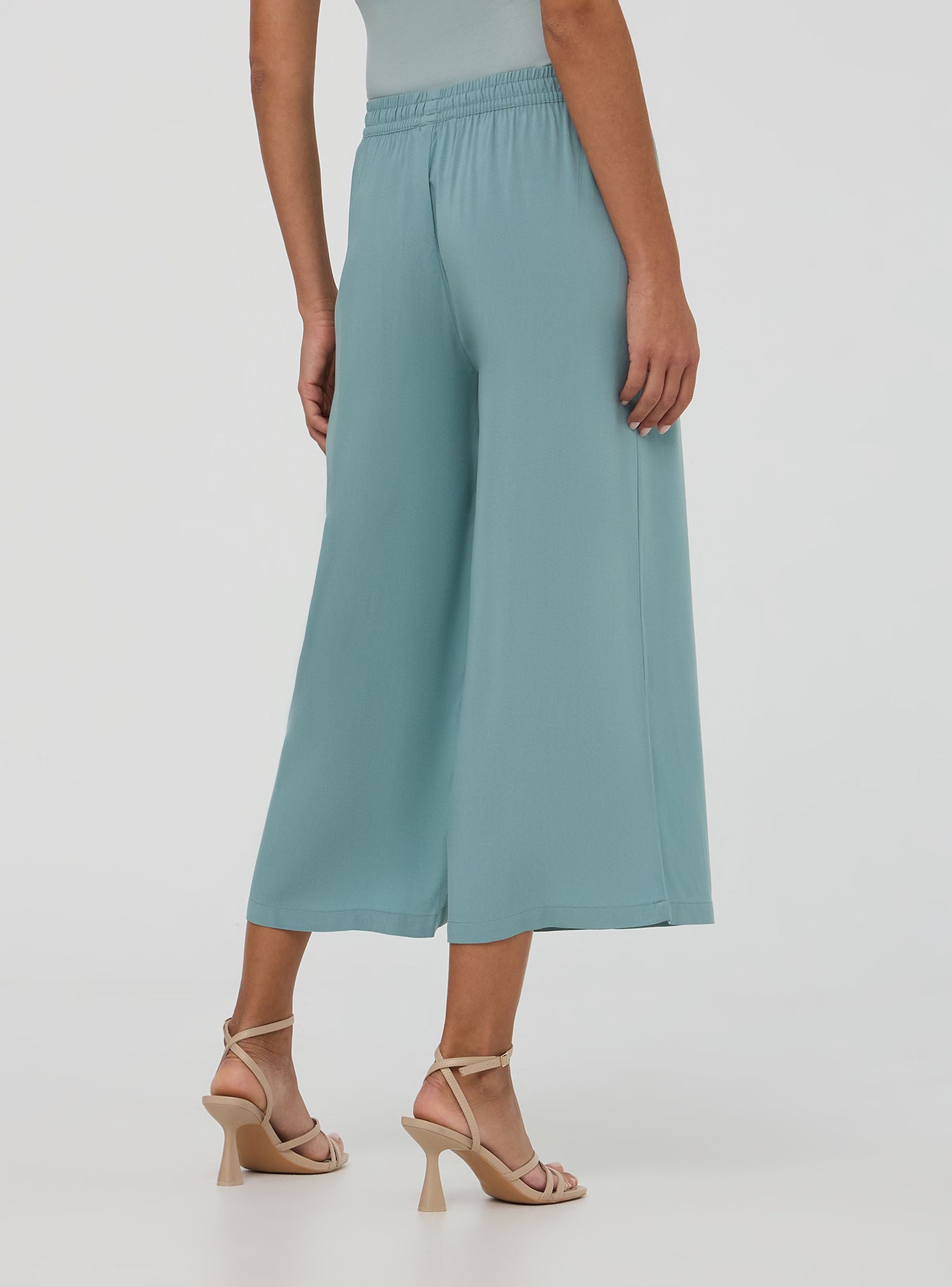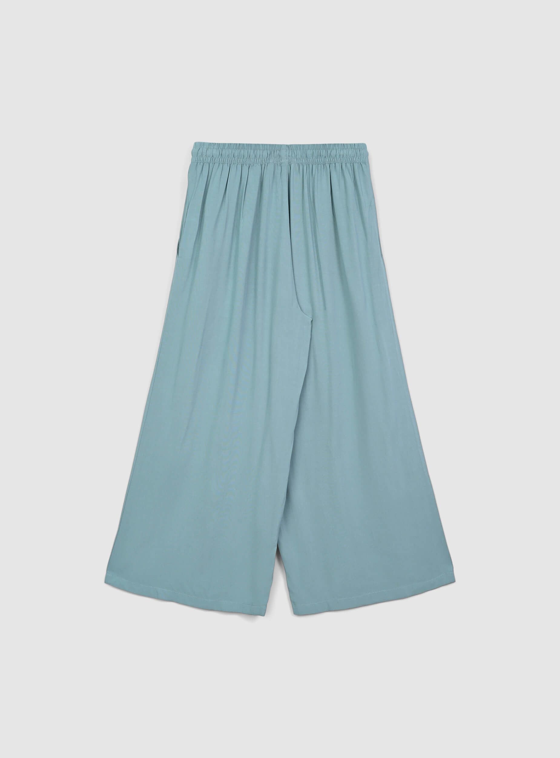 Pantalons pour femmes caractérisés par un design uni avec une coupe large à palazzo. La longueur cropped apporte une touche moderne et polyvalente, parfaite pour des associations décontractées ou élégantes. Ils sont dotés de poches latérales pratiques et fonctionnelles, ainsi que d'un confortable cordon de serrage à la taille qui permet d'ajuster l'ajustement de manière optimale. L'élastique à la taille assure confort et flexibilité lors de l'utilisation, rendant ces pantalons idéaux pour ceux qui recherchent un style sophistiqué sans renoncer au confort.Détails