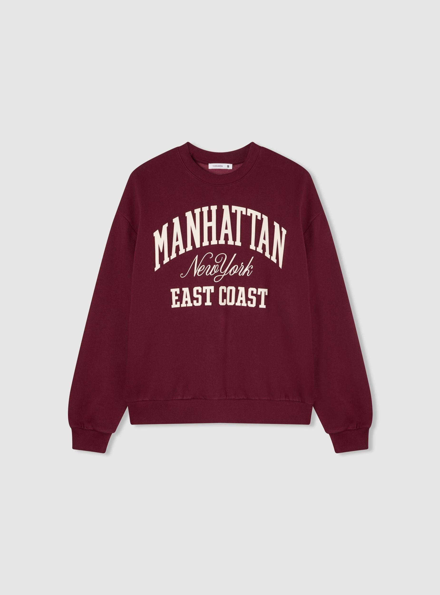 Sweat-shirt femme épaisse avec impression universitaire "Manhattan New York East Coast". Le design col rond, sans capuche et sans zip, avec des poignets et un bas côtelés offre un ajustement confortable et enveloppant, idéal pour affronter l'hiver avec style. Fabriquée en tissu polaire, elle est parfaite pour un look décontracté et sportif. À associer avec des jeans, des pantalons amples ou des leggings pour créer des tenues urbaines au caractère affirmé et à l'inspiration américaine.Détails