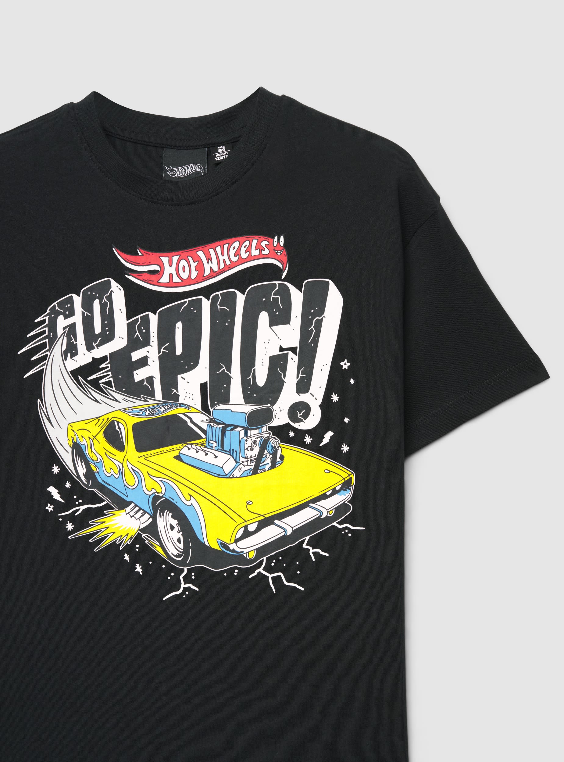 T-shirt enfant à manches courtes avec col rond et coupe régulière, idéale pour l'école et les loisirs. L'impression frontale avec inscription et graphique de voiture Hot Wheels® apporte une touche dynamique et se marie facilement avec un jean, un short ou un jogger. Finitions soignées au niveau du col et de l'ourlet pour un look pratique et confortable au quotidien.Détails