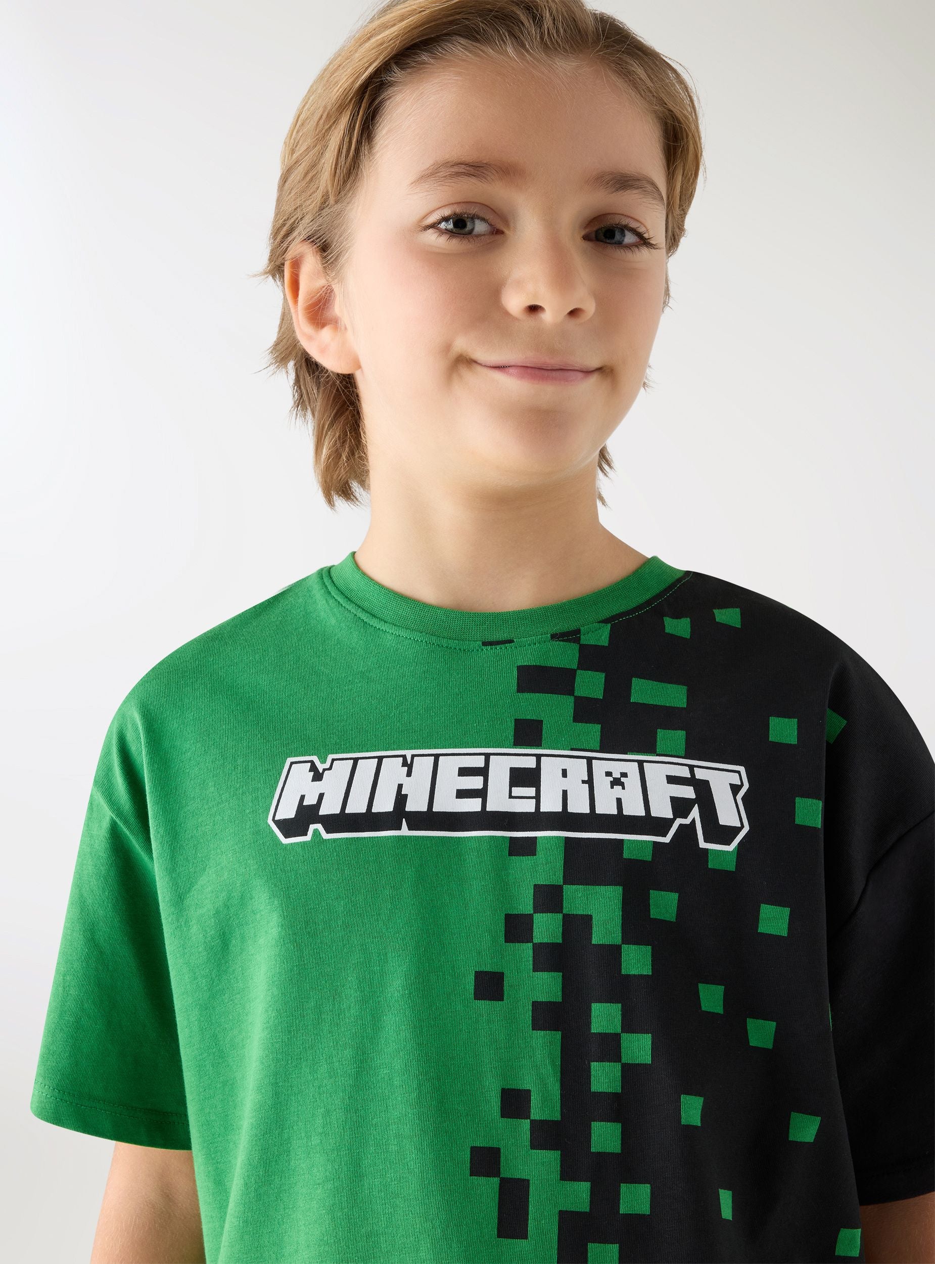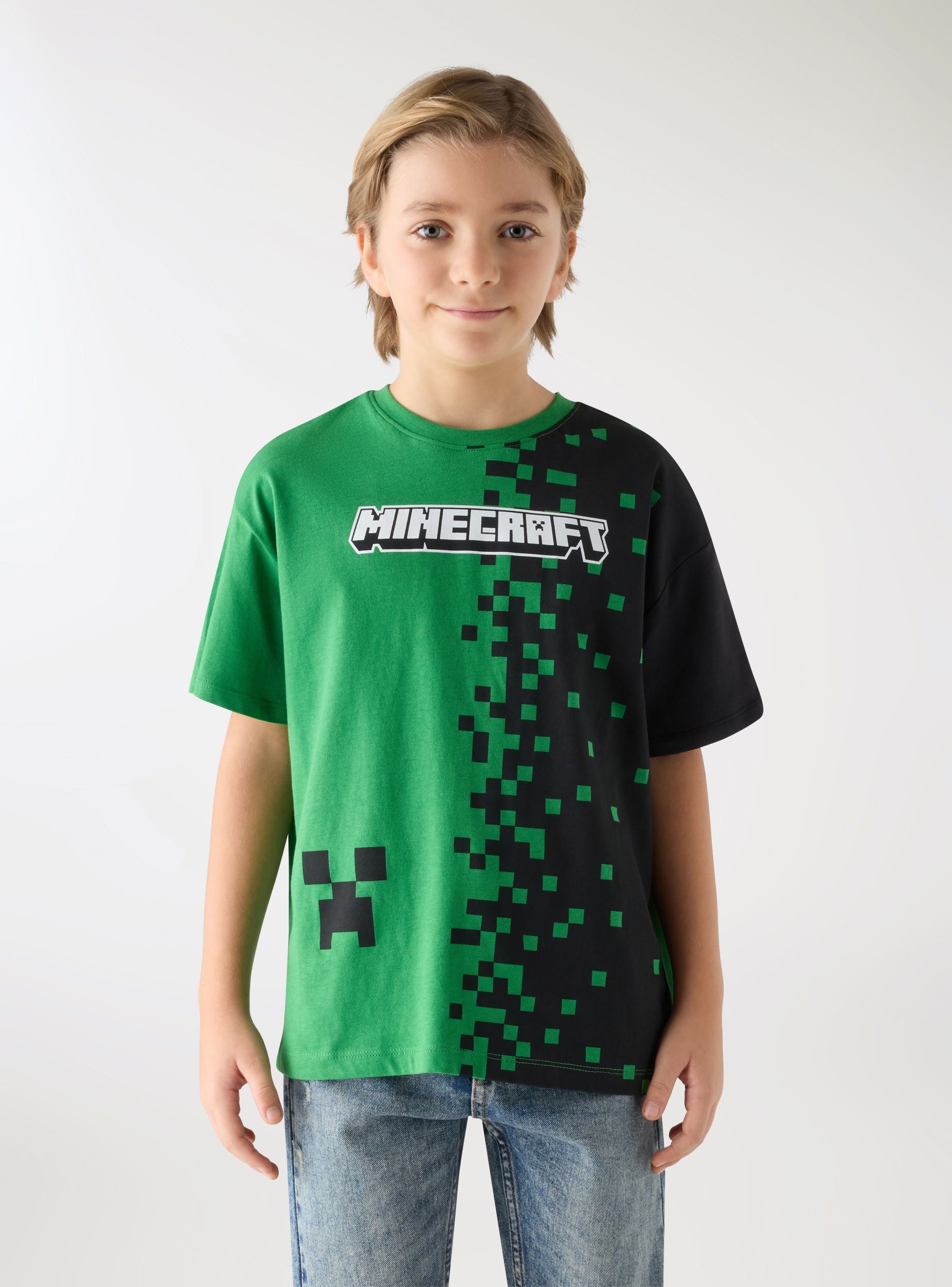 T-shirt enfant à manches courtes avec col rond et impression Minecraft® en style pixel. Le graphisme avec inscription et motif à carreaux apporte une touche ludique parfaite pour l'école et les loisirs. Coupe confortable à porter avec un jean, un jogger ou un short, idéale pour un look pratique et dynamique au quotidien.Détails