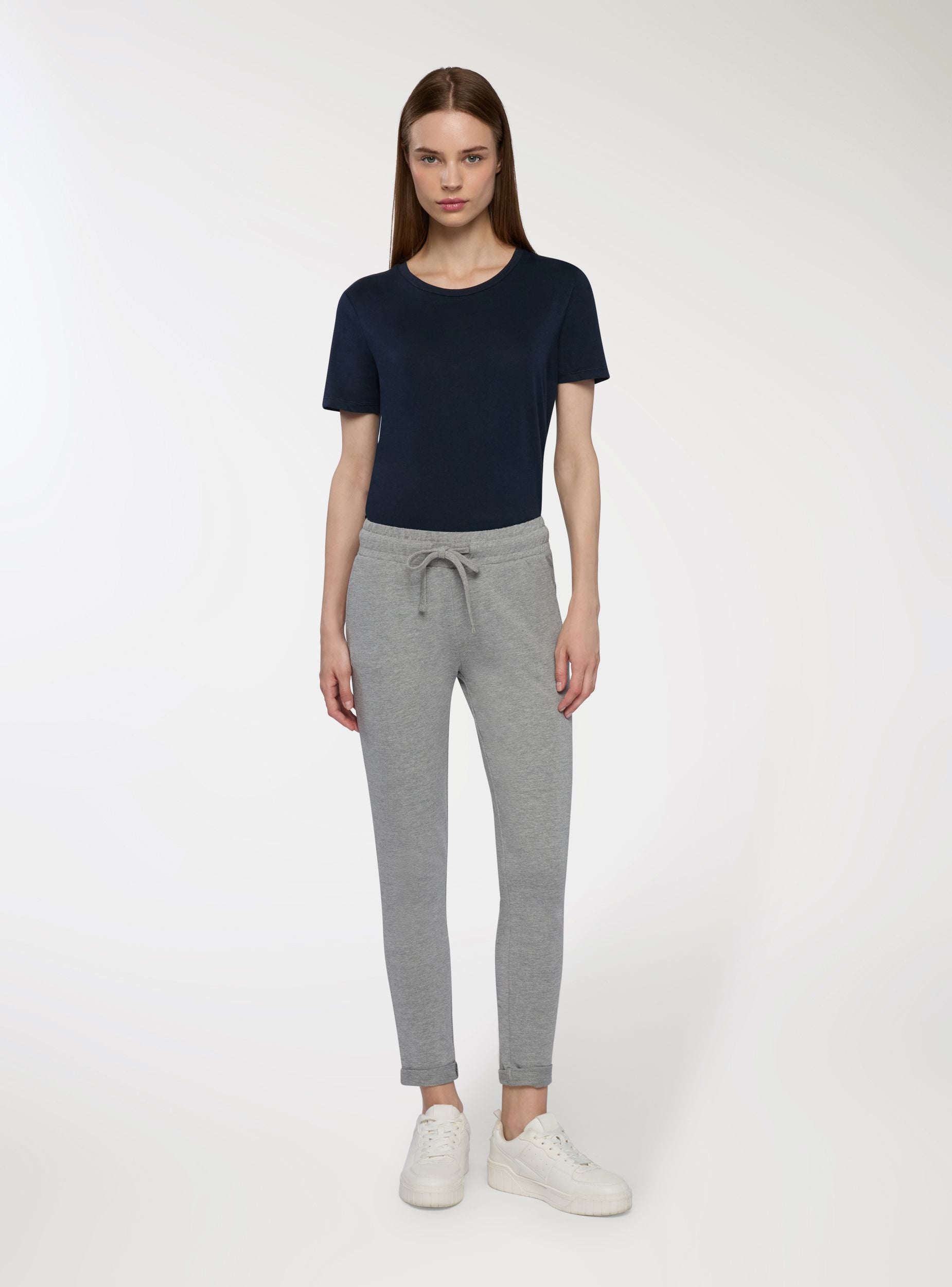 T-shirt femme à manches courtes avec col rond. Le design est simple et minimaliste, sans décorations, ce qui la rend polyvalente et adaptée à diverses occasions. Confortable et facile à assortir avec différents types de vêtements. Parfaite pour un look décontracté ou sportif.Détails
