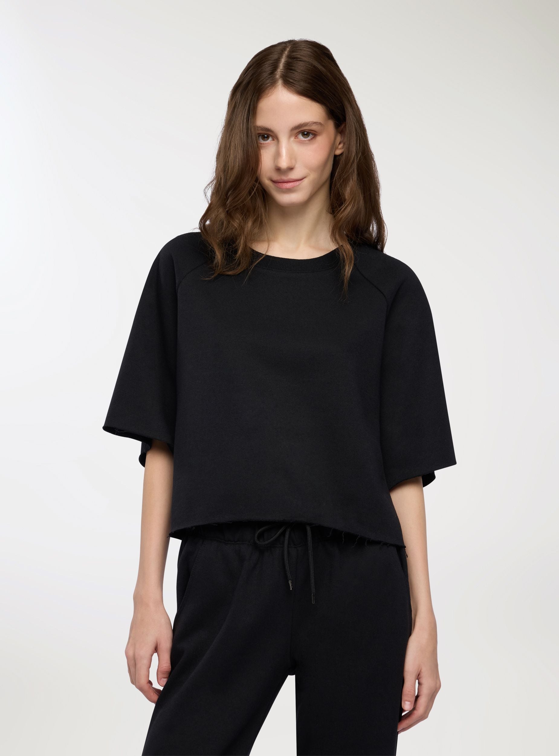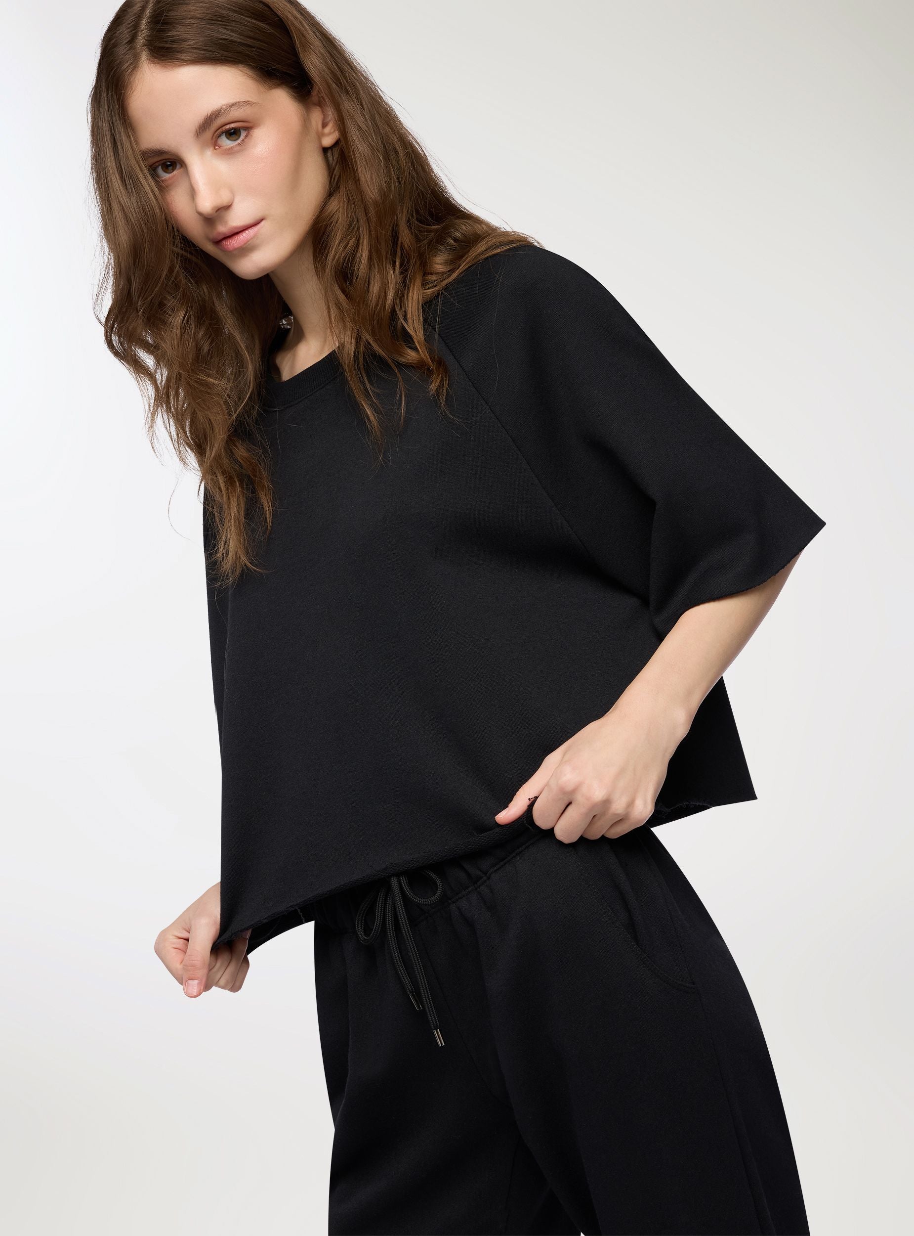 T-shirt ample pour femme, unie, avec coupe crop et manches raglan courtes. Idéale pour un look décontracté ou tendance avec un jean taille haute, des jupes midi ou des shorts. Coupe ample, parfaite avec des chemises ouvertes ou des vestes légères. Design essentiel et polyvalent pour un usage quotidien et les loisirs.Détails