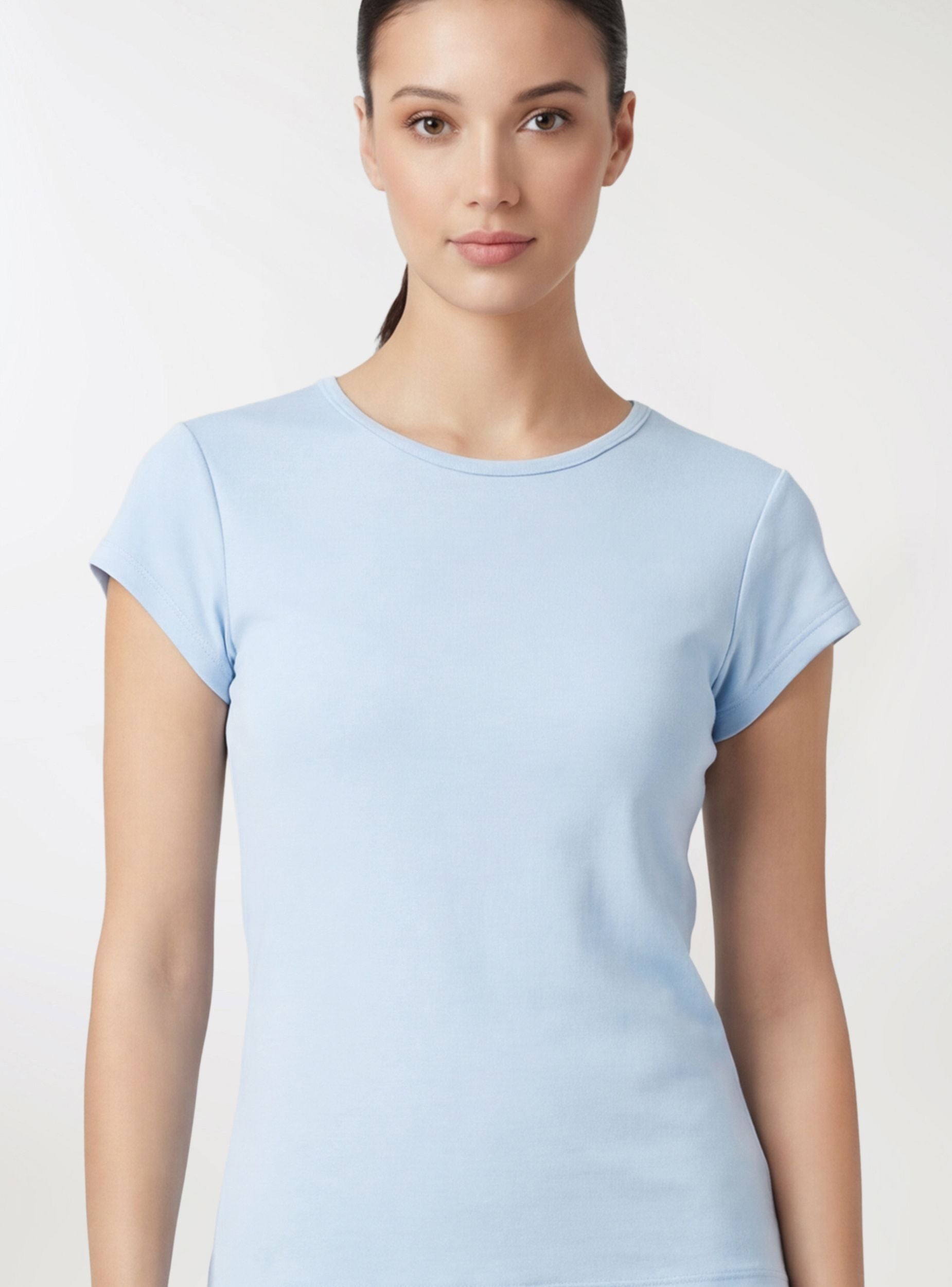 T-shirt femme unie avec col rond et manches courtes. Ligne essentielle et coupe régulière, idéale sous un blazer ou un cardigan et parfaite avec un jean ou une jupe pour les loisirs. Pièce polyvalente pour des tenues quotidiennes, facile à assortir dans un style casual ou urbain.Détails