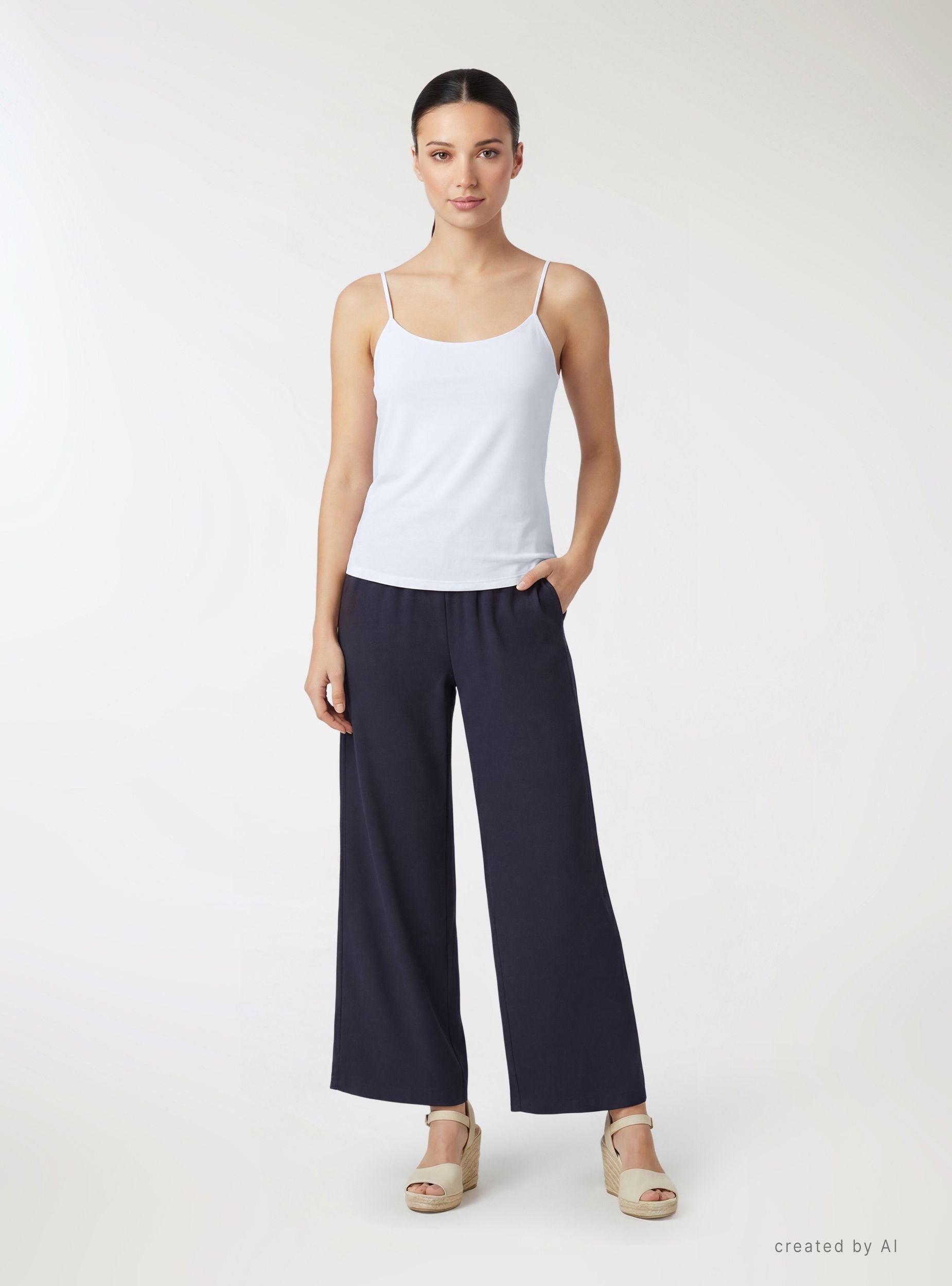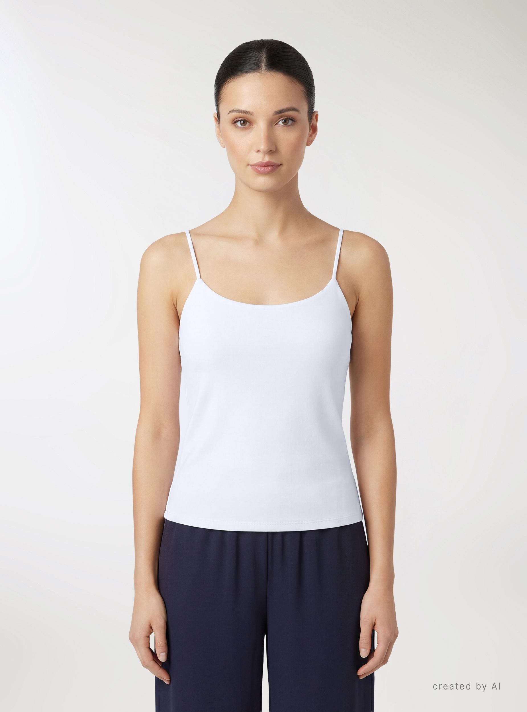 Débardeur femme uni avec fines bretelles et encolure douce drapée. Longueur régulière, idéal sous un blazer ou une chemise pour le bureau, et parfait avec un jean ou une jupe pour les loisirs. Design minimaliste. Un vêtement polyvalent à porter seul lors des journées chaudes ou en superposition pendant les mi-saisons.Détails