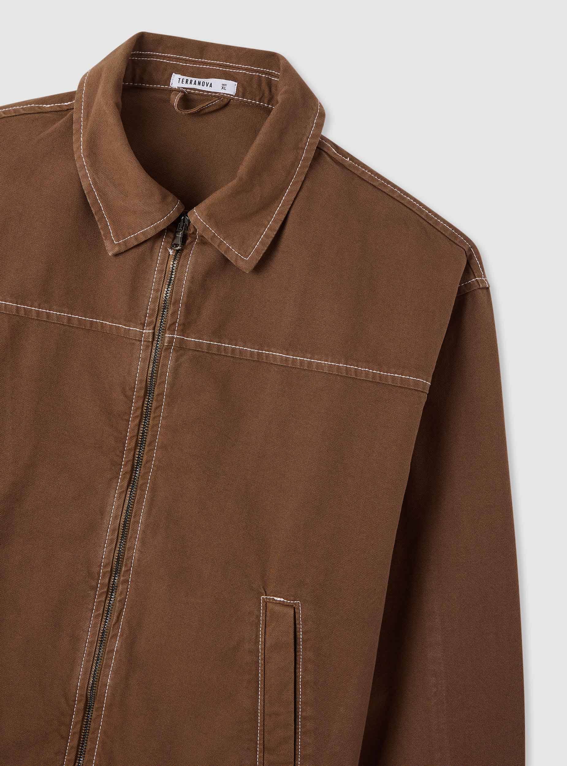 Veste pour homme unie au style workwear, idéale pour un look urbain et les loisirs. Modèle court avec col chemise, manches longues et fermeture frontale zippée. Lignes épurées mises en valeur par des surpiqûres contrastantes et des poches latérales verticales passepoilées. Parfaite au-dessus d’un t-shirt ou d’un sweat, avec un jean et des baskets.Détails
