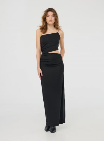 Combinaison longue pour femme en couleur unie avec un élégant effet chambray, parfaite pour un look estival frais et polyvalent. Le corsage avec un travail en smock assure un ajustement près du corps et confortable, tandis que la fermeture nouée derrière le cou ajoute une touche de féminité. Idéale pour des promenades au bord de la mer ou des journées en ville, elle s'associe parfaitement à des sandales plates pour un look décontracté ou à des compensées pour une élégance décontractée.