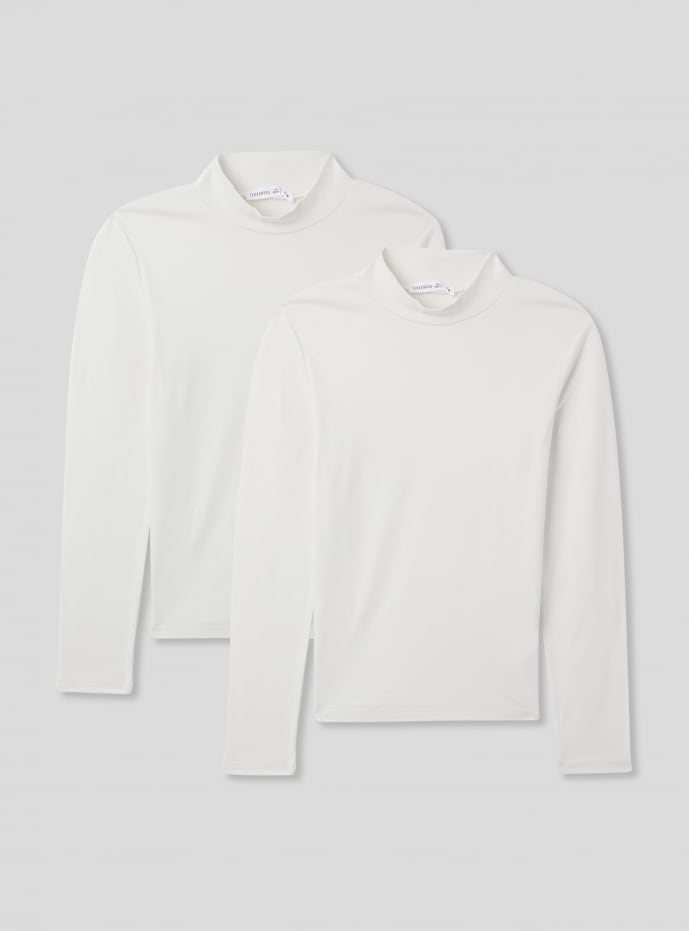 Ensemble composé de deux t-shirts à manches longues pour fille avec col montant. Tissu extensible uni avec un design minimaliste. Parfait seul ou comme couche de base sous d'autres vestes ou pulls.