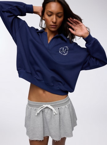 Jupe mini bicolore pour femme, réalisée en tissu élastique. Le design présente une base noire enrichie d'une bande supérieure bleue qui arbore un imprimé race à l'arrière. Look minimaliste et épuré. La coupe est droite et moderne, idéale pour un look décontracté et sportif. Parfaite pour les activités quotidiennes ou les week-ends relaxants. Dotée d'une fermeture latérale avec zip caché. Cet article fait partie du projet TRNPOPLAB né de la collaboration avec NABA Milan. Les étudiants en design de mode ont donné vie à des collections inspirées des tendances les plus cool du moment. Et maintenant, ils verront leurs créations prendre vie et arriver directement entre vos mains !