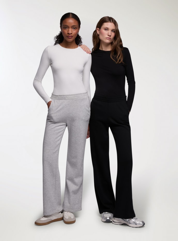 Lot de 2 pantalons de survêtement pour femme, modèle à jambes larges. Taille élastiquée pour un confort quotidien avec poches latérales passepoilées. Coupe droite et ample, idéale pour les loisirs. Faciles à assortir avec des sweats à capuche, des t-shirts et des baskets. Design uni, parfaits pour créer des tenues minimalistes et polyvalentes.