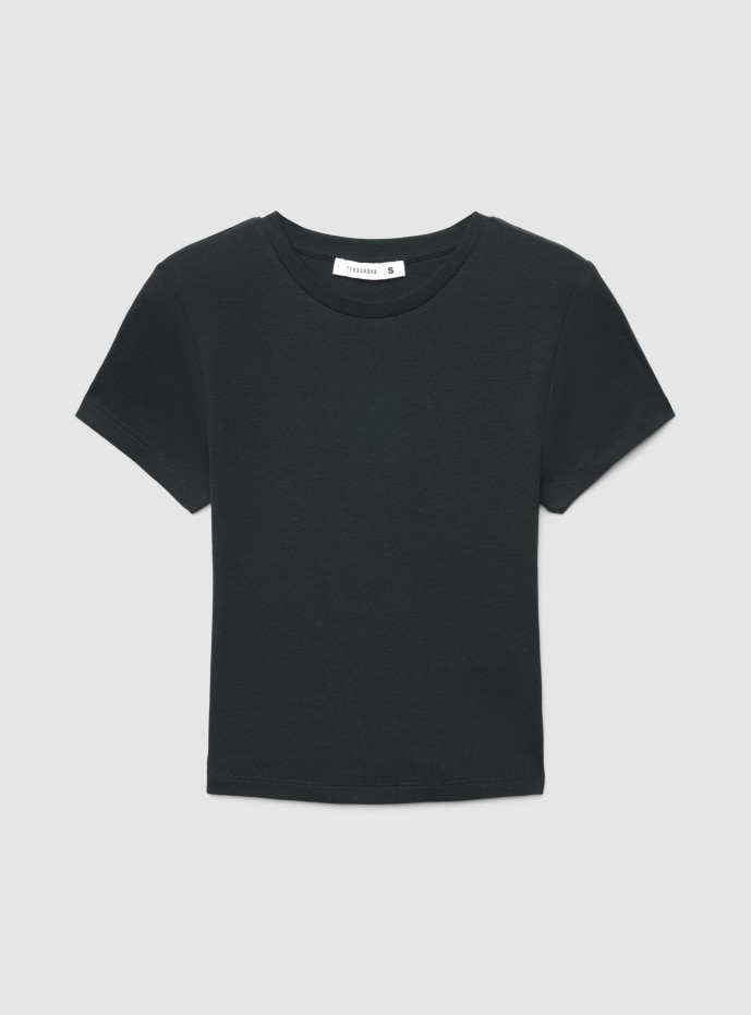 T-shirt femme unie avec une coupe courte. Col rond et manches courtes, design essentiel parfait pour un look quotidien. À porter avec un jean taille haute, des jupes midi ou sous une chemise ouverte pour une touche moderne. Design épuré avec des finitions minimalistes qui mettent en valeur la silhouette. Polyvalente pour les loisirs, à associer avec des baskets ou des bottines pour un look casual et tendance.