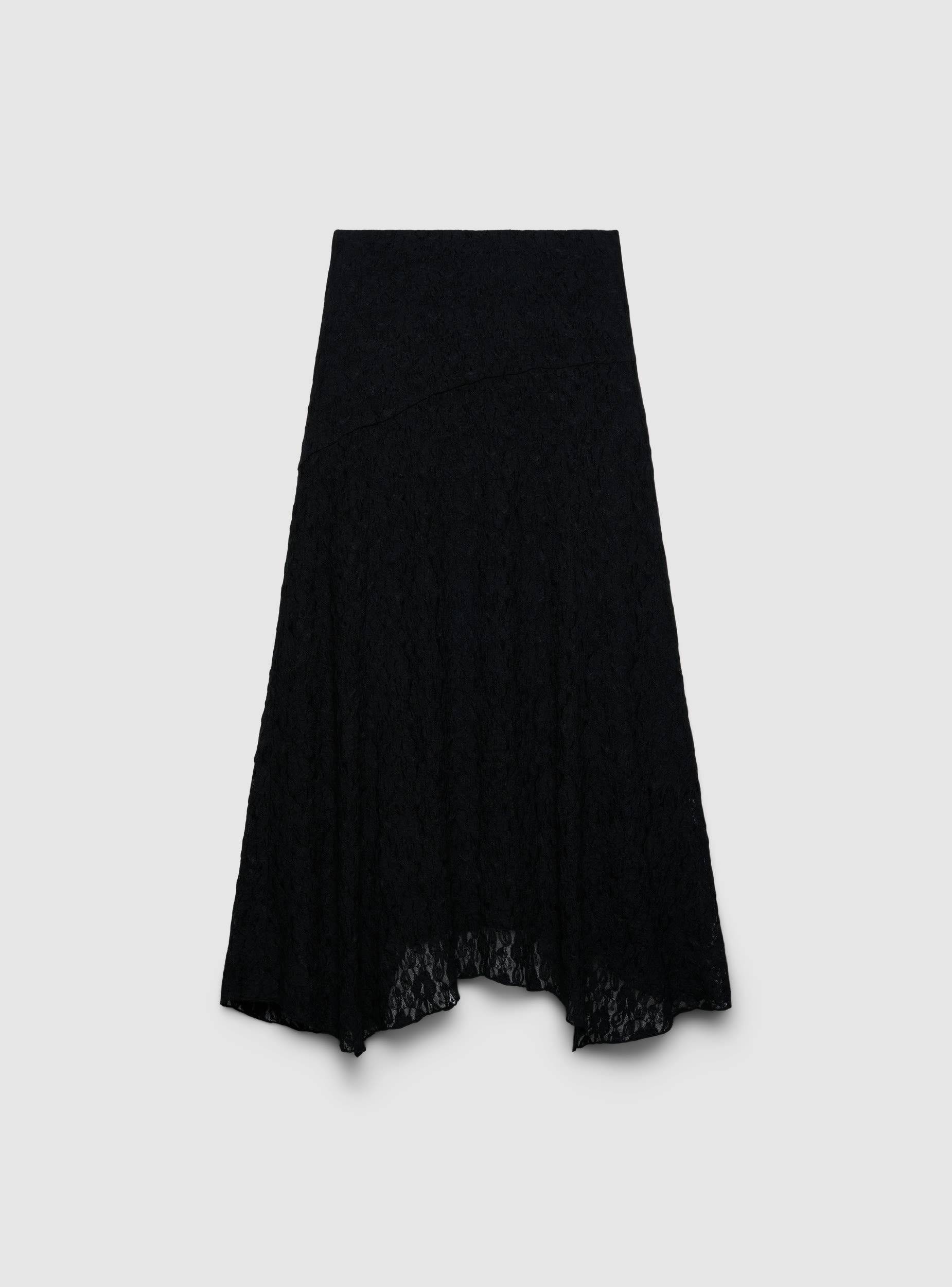 Ženska suknja u jednobojnoj varijanti s lagano proširenim krojem i asimetričnim rubom, savršena za dnevne ili večernje ženske kombinacije. Čipkani detalj dodaje romantični štih, dok pojas u struku naglašava siluetu i osigurava udobnost. Nosite je s bluzom i sandalama za šik outfit ili s majicom i gležnjačama za moderan kontrast.Detalji