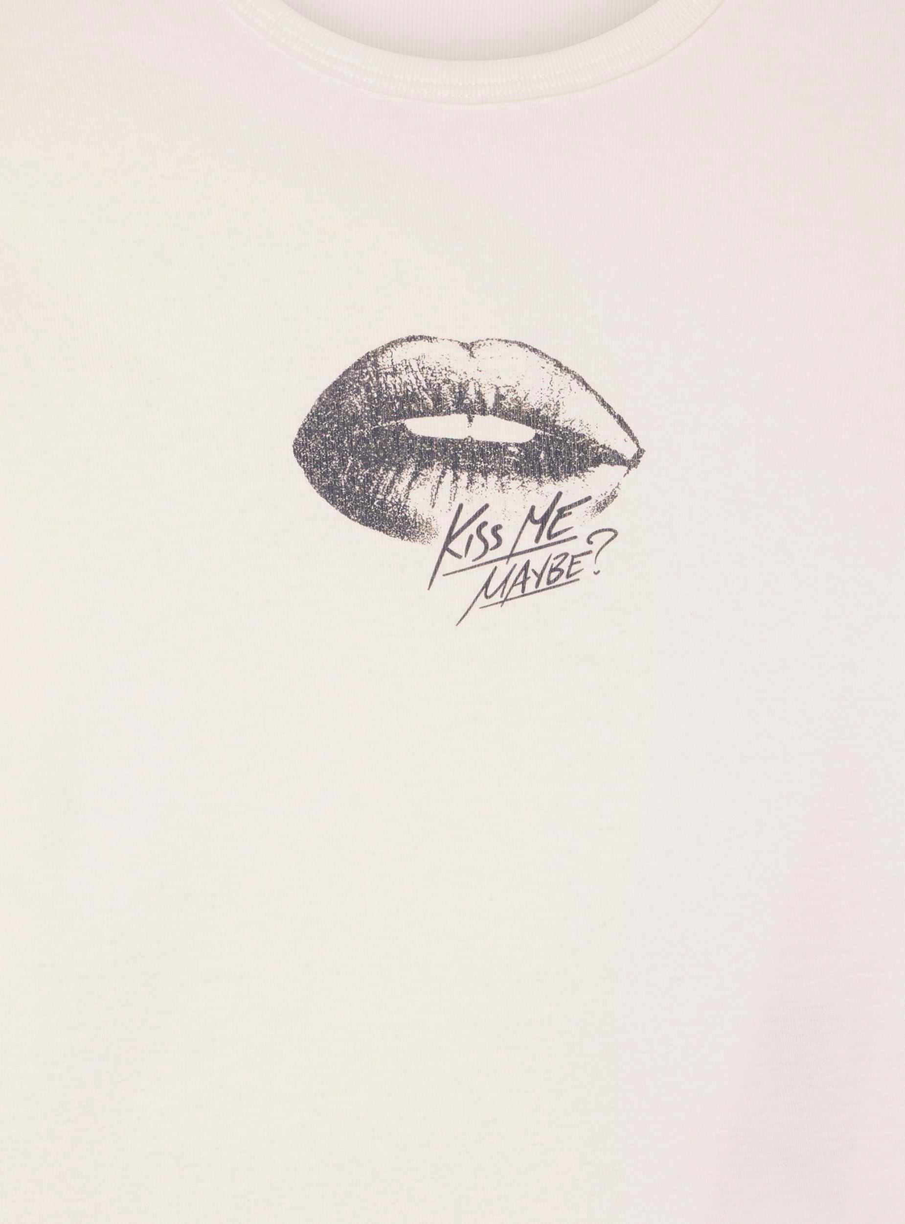 Ženska majica s crop dizajnom i printom usana sa natpisom. Idealna za ležeran i moderan izgled, savršeno se slaže s trapericama ili hlačama visokog struka. Crop kroj dodaje dašak suvremenog stila, dok okrugli izrez i kratki rukavi osiguravaju udobnost i praktičnost. Savršena za neformalne prilike ili za izražavanje jedinstvenog i osobnog stila.Detalji