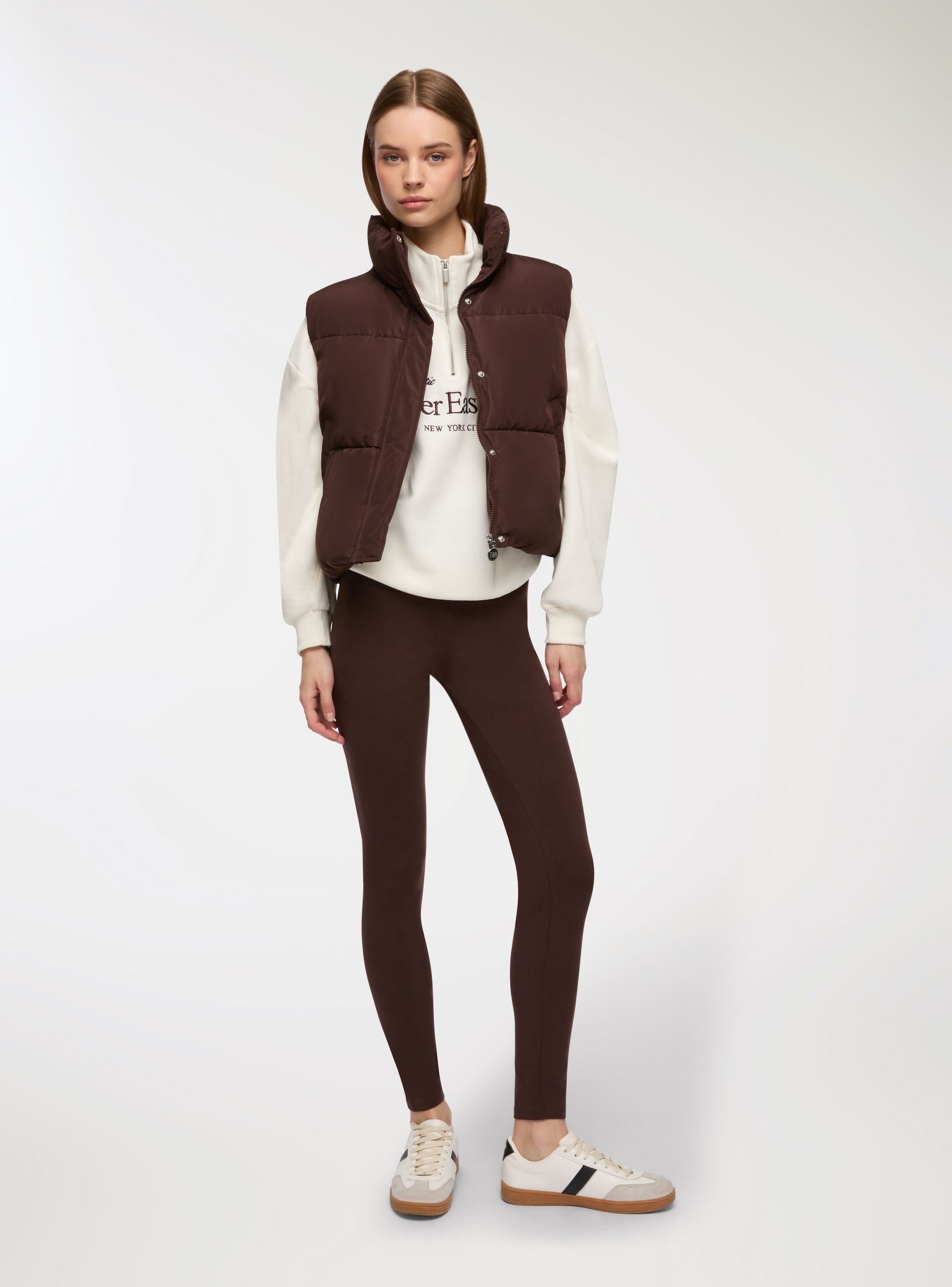 Ženske tajice idealne za svestran i udoban izgled. Model s visokim strukom pruža usku prilagodbu koja ističe siluetu, savršeno za kombiniranje s oversized majicama, duksericama ili kratkim topovima. Osnovna linija bez džepova i teška tkanina u jednobojnoj boji čine ih pogodnima kako za slobodno vrijeme, tako i za trenutke opuštanja, osiguravajući praktičnost i slobodu kretanja.