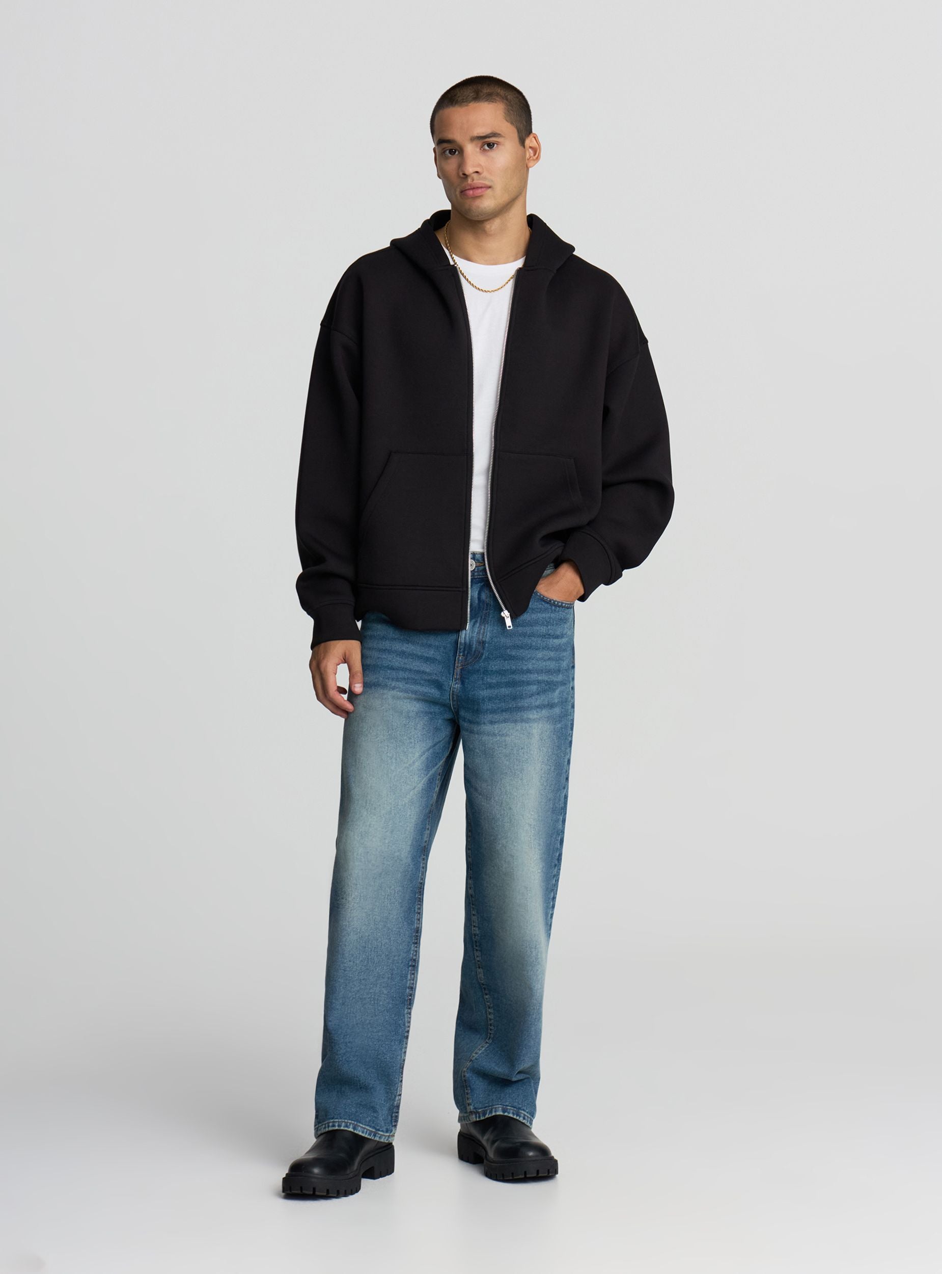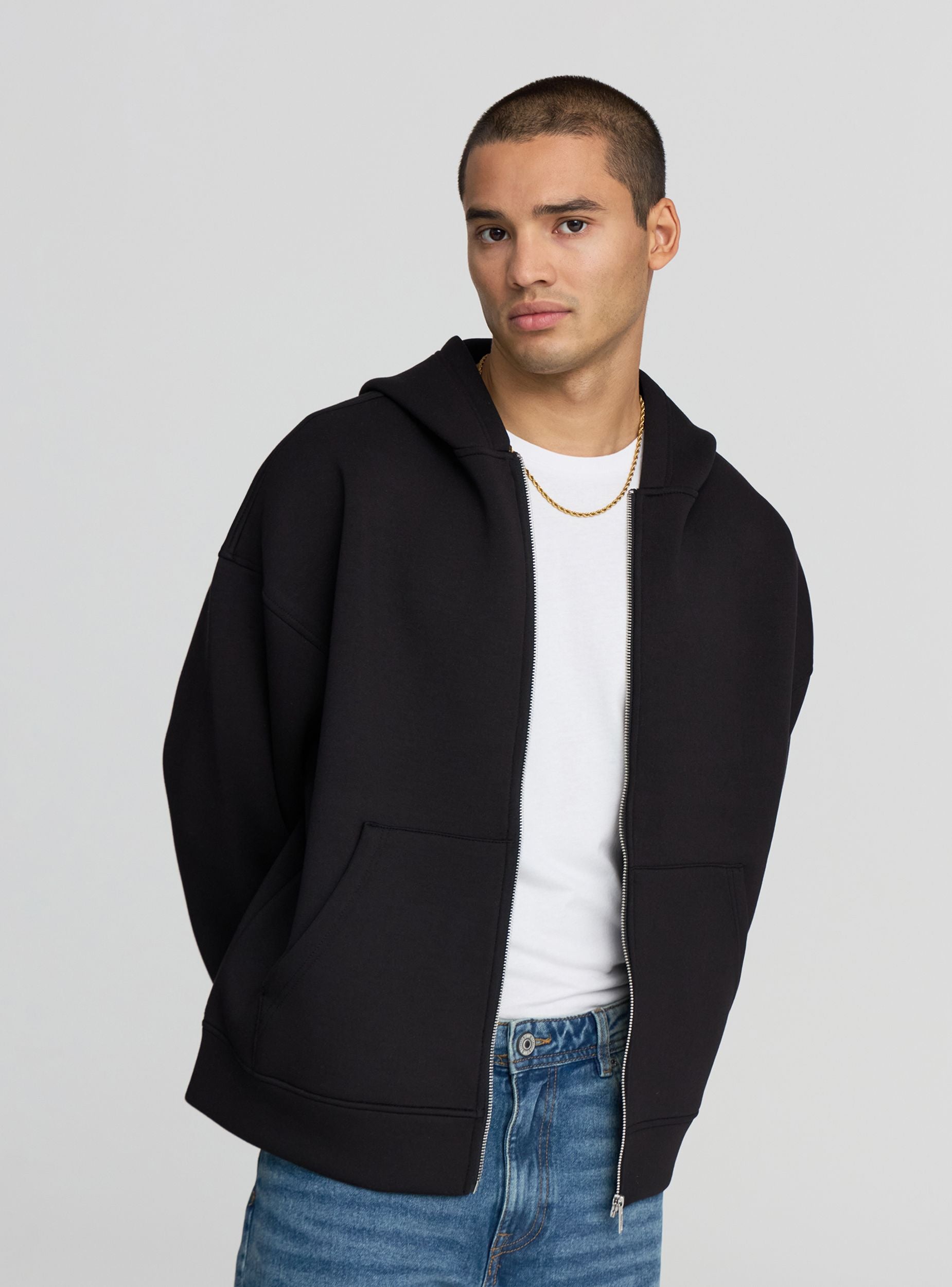 Muška majica od neoprena u jednobojnoj varijanti, s kapuljačom i patentnim zatvaračem, idealna za ležeran i udoban izgled. Opremljena je prednjim džepovima za praktičnost i manžetama za optimalno pristajanje. Savršena za kombiniranje s trapericama ili sportskim hlačama, ova majica prikladna je za slobodno vrijeme ili aktivnosti na otvorenom. Jednostavan i svestran dizajn čini je neizostavnim komadom u ormaru.Detalji