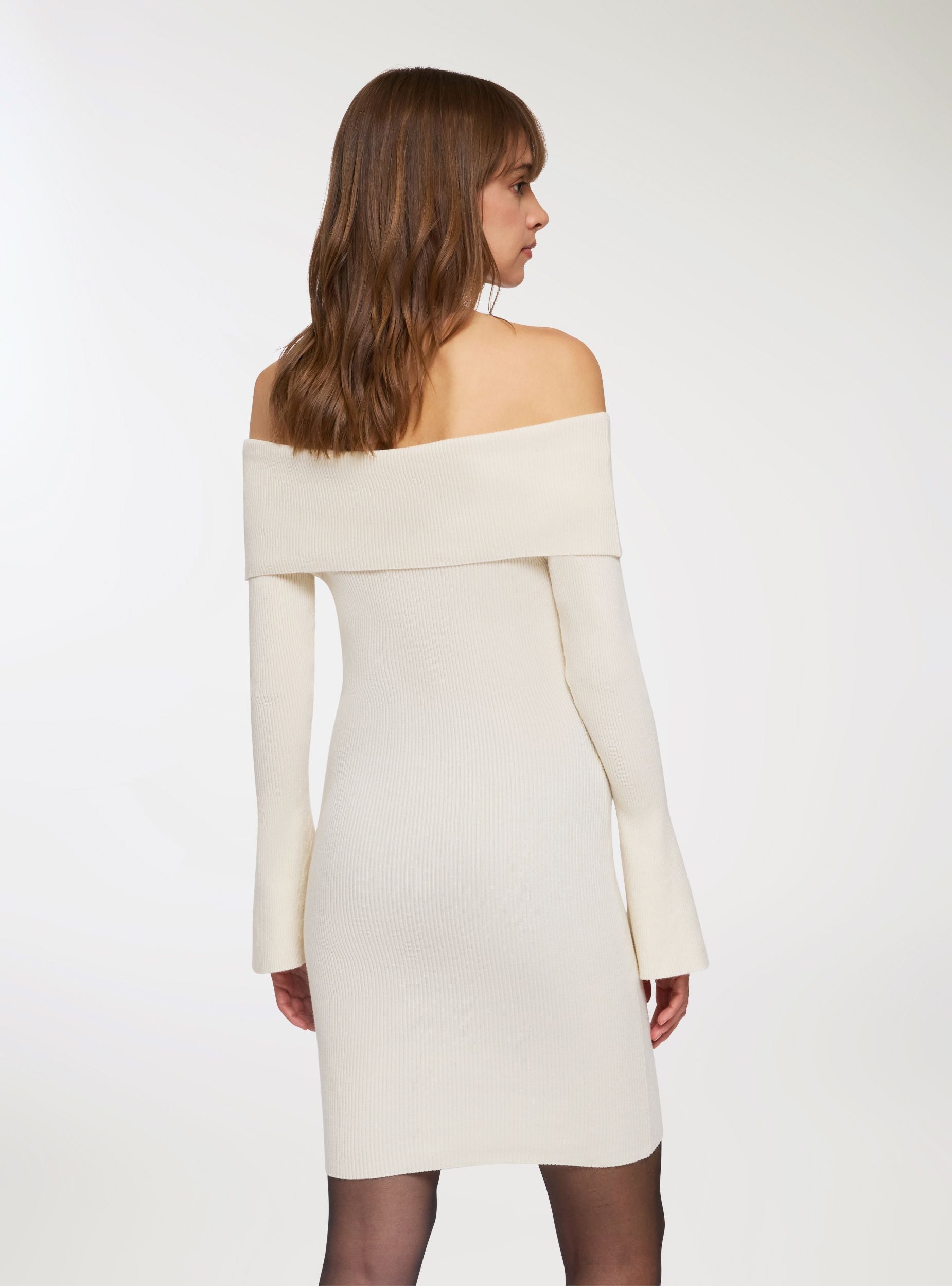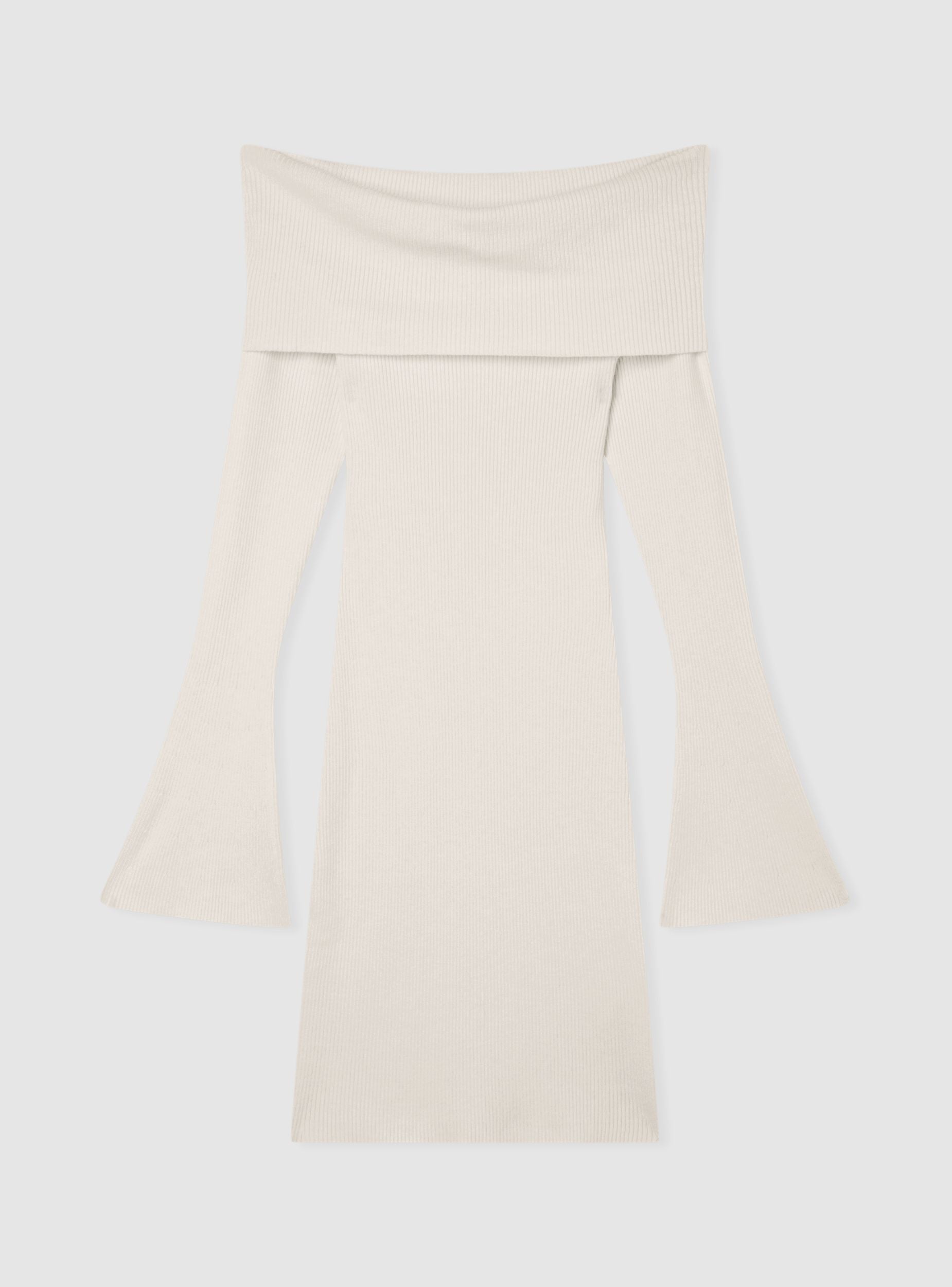 Ženska pletena haljina s dizajnom bez ramena, savršena za ženstven i sofisticiran stil. Uski kroj naglašava siluetu, dok lagano raširene duge rukave dodaju elegantan dodir. Idealna za hladnu sezonu, odgovara i za ležerne kombinacije s čizmama, kao i za chic večernje outfite. Svestran, topao i moderan komad za svaku priliku.Detalji