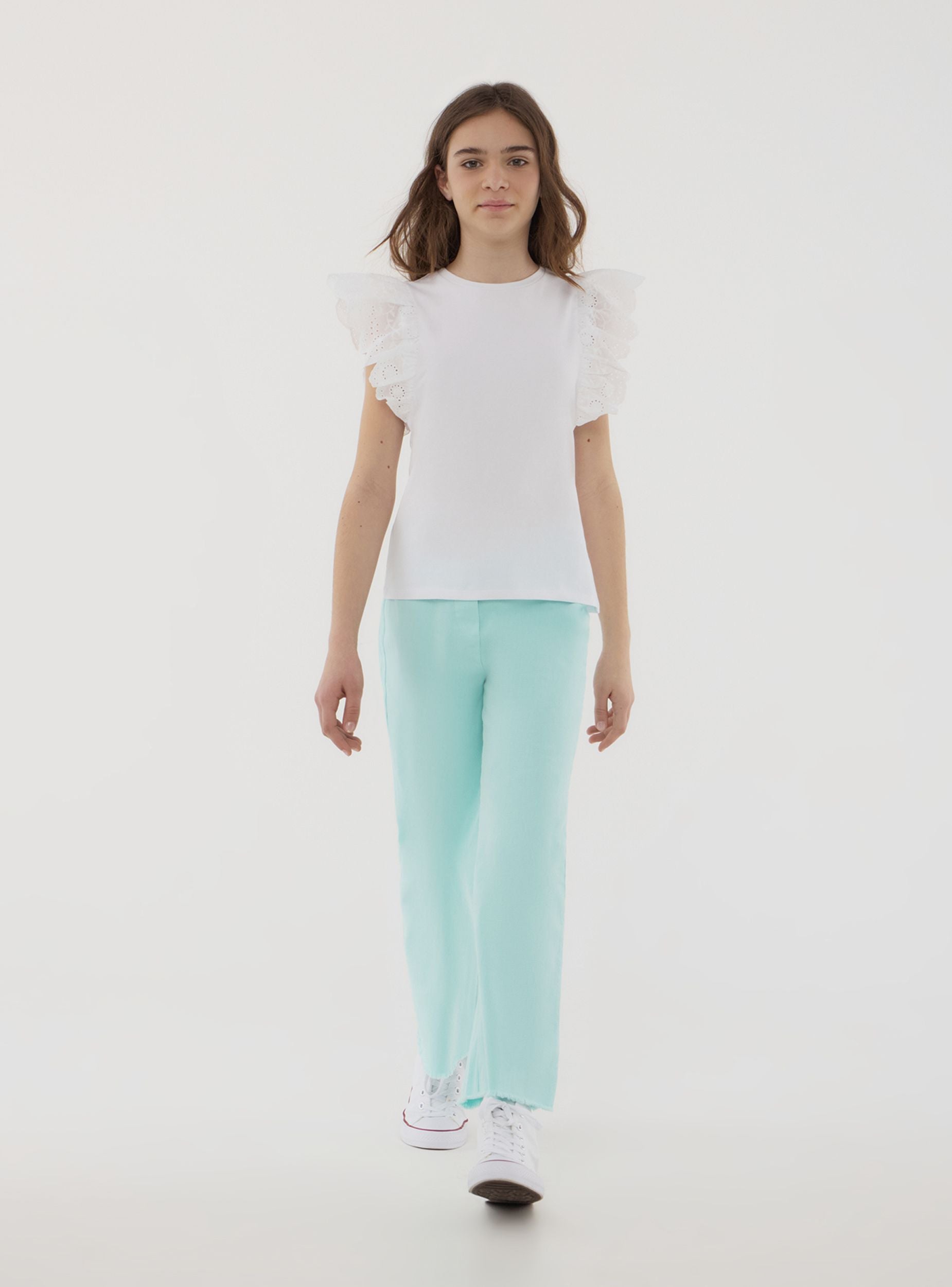Dječji hlače idealne za ležeran i moderan izgled, savršene za slobodno vrijeme ili neformalan outfit. Karakterizirane udobnim krojem, imaju dizajn u obliku zvona. Svestran izbor za one koji traže stil i praktičnost u svakoj prilici.Detalji