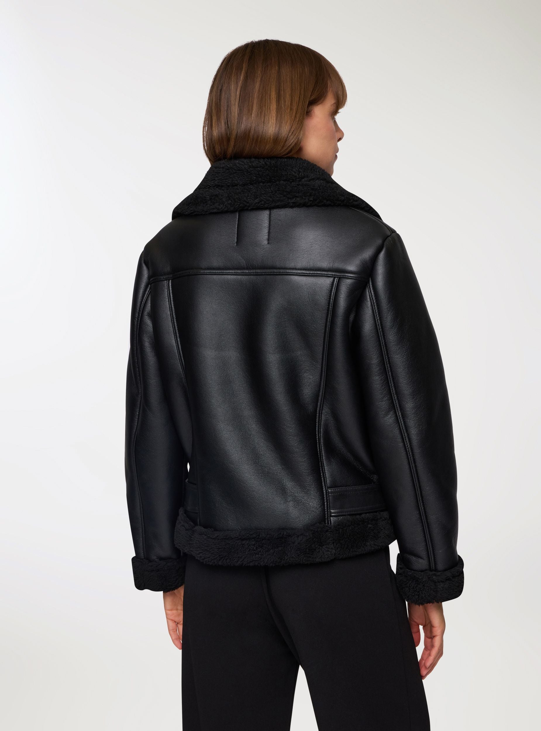 Ženska jakna od sintetičke ovčje vune, savršena za urbani i moderni izgled. Idealna za svježe dane, ova jakna se ističe svojim biker stilom s detaljima na zatvaraču i podesivim remenom. Redovita kroja čini je udobnom i svestranom, pogodnom za kombiniranje s trapericama ili ležernim hlačama. Komad koji spaja praktičnost i stil za trendi outfit.Detalji