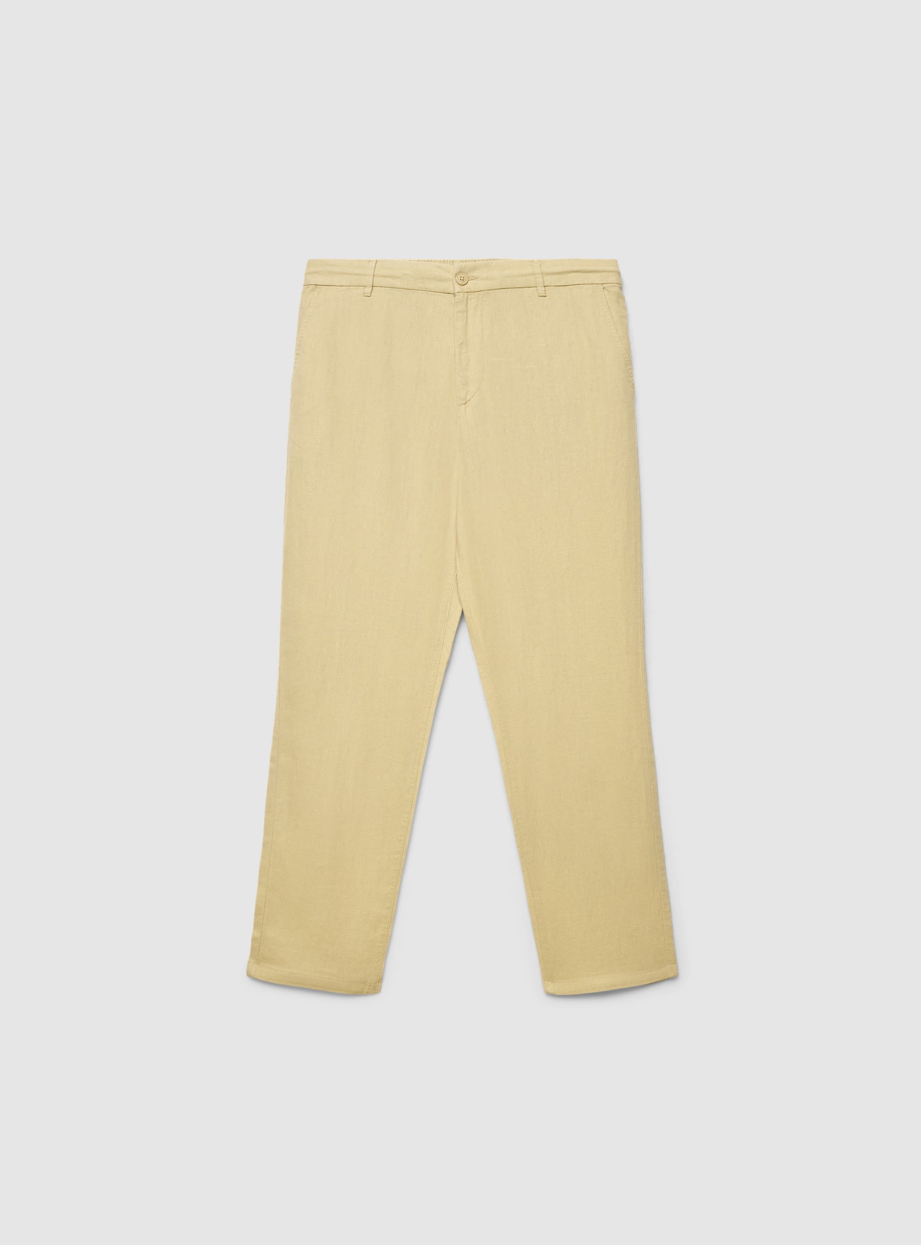 Muške hlače u stilu chinos jednobojne, namijenjene onima koji traže udobnost i stil u svakoj prilici. Model se ističe elastičnim strukom s gumbom u sredini, što osigurava regularno i udobno pristajanje tijekom cijelog dana. Bočni džepovi dodaju praktičnost, dok ih čist i jednostavan dizajn čini savršenima za kombiniranje s košuljom, polo majicom ili jednostavnom majicom. Prikladne su i za slobodno vrijeme i za formalnije prilike, te su nezaobilazan dio muške garderobe.Detalji