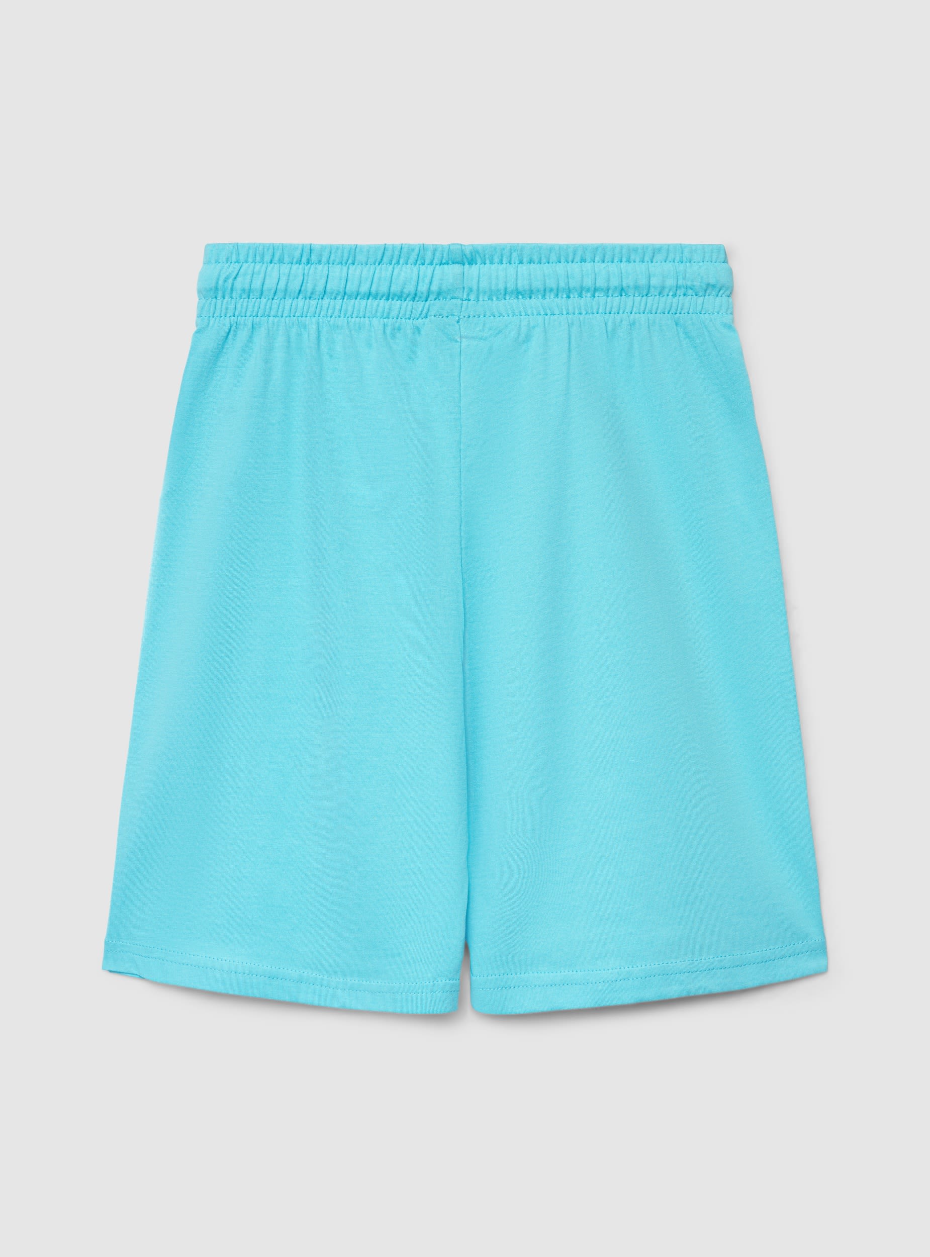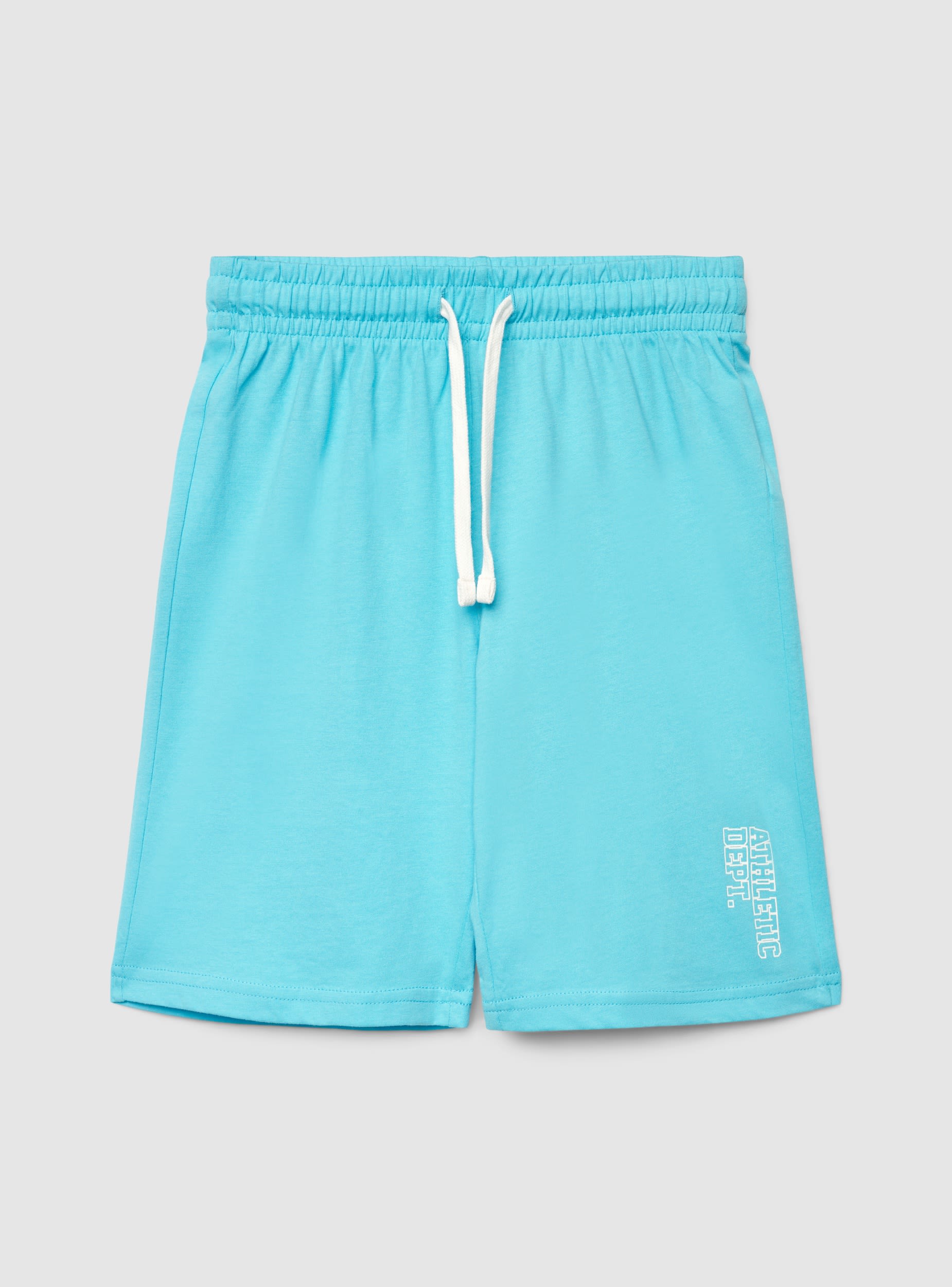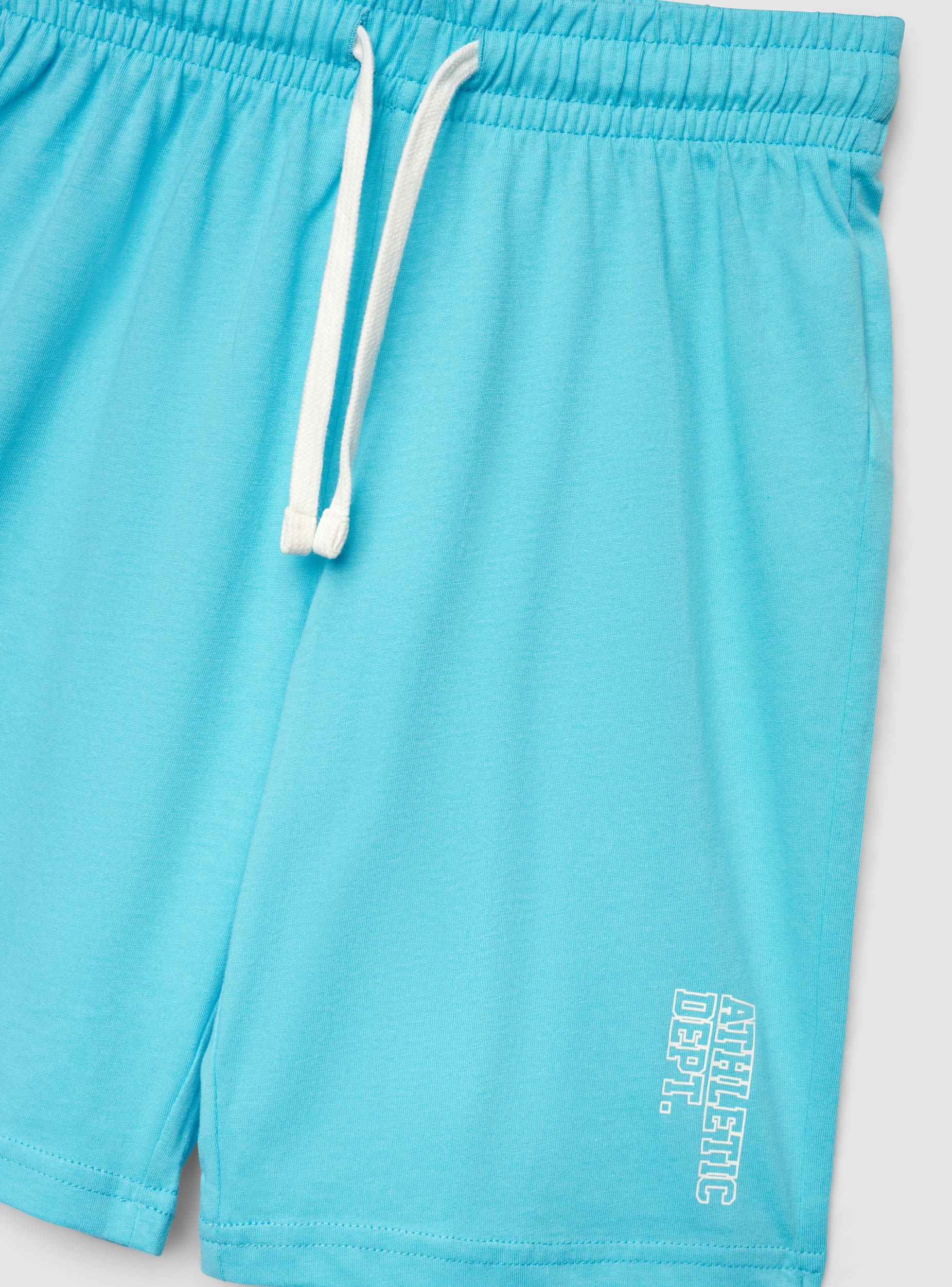 Dječje kratke hlače u jednobojnoj varijanti s elastičnim pojasom i podesivim vezicama, dizajnirane za sport i slobodno vrijeme. Print sa strane s natpisom dodaje dinamičan detalj. Regularan kroj i ravne nogavice, idealne uz majicu i tenisice ili uz hoodicu za udoban izgled za školu i vikend.Detalji