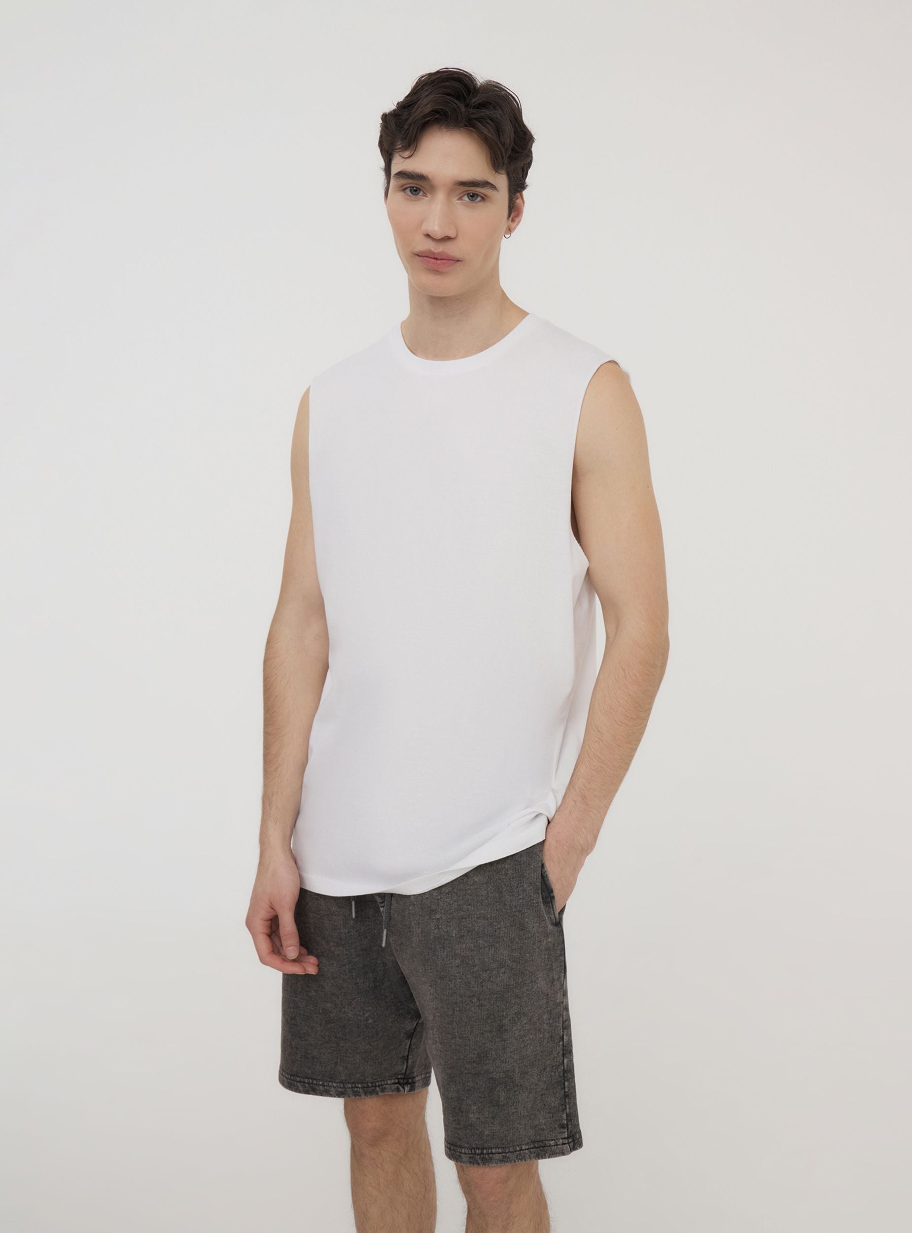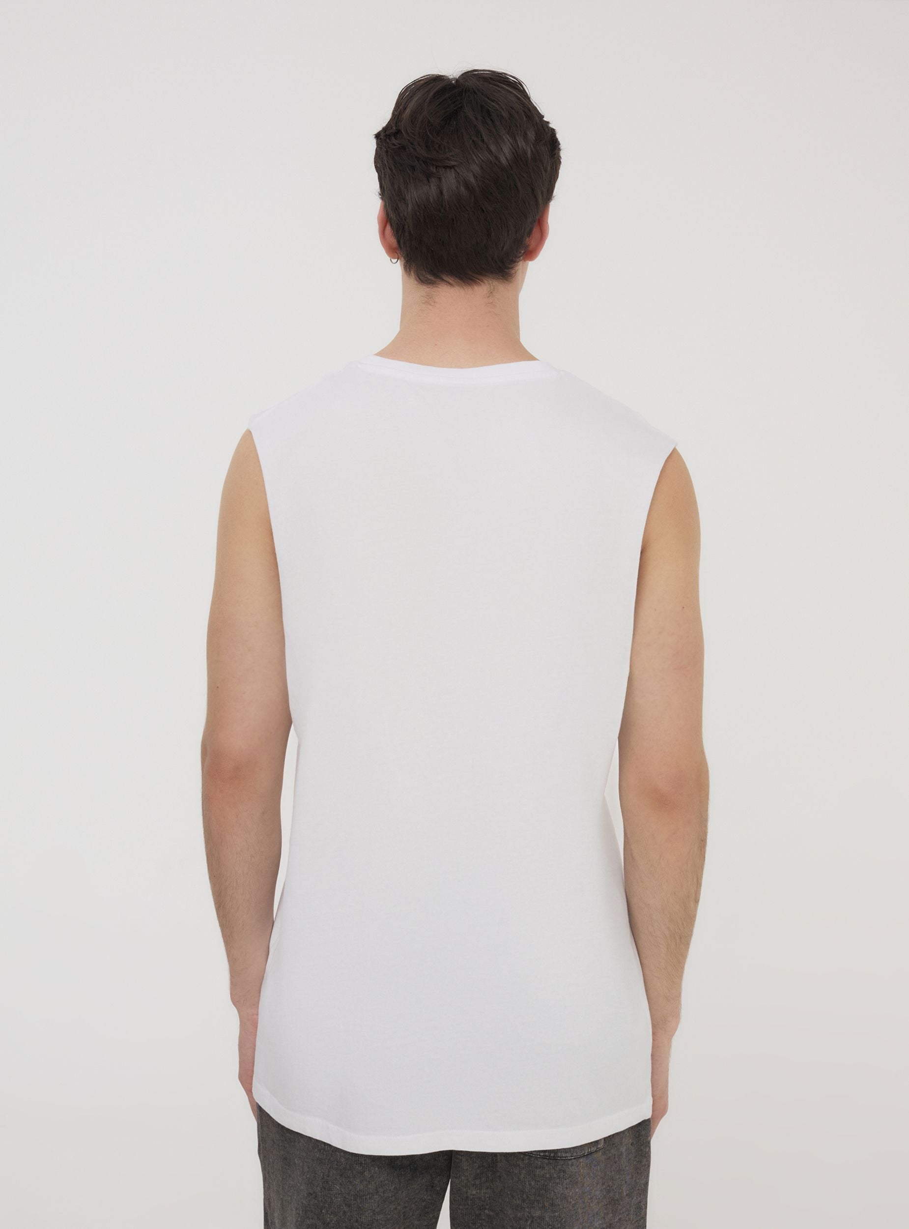Muška jednobojna majica bez rukava, idealna za ljetnu sezonu s udobnošću i praktičnošću. Model od pamužnog džersija savršen je za ležeran izgled tijekom vrućih dana ili za trening u teretani. Jednostavan i ravni kroj osigurava maksimalnu slobodu kretanja, čineći je svestranom odjevnom predmetom koju možete kombinirati s trapericama, šortsevima ili sportskim hlačama. Prikladna za aktivnosti na otvorenom, trenutke opuštanja ili kao osnova za minimalne i esencijalne ljetne outfite. Neophodan komad za one koji traže udobnu i funkcionalnu odjeću za svaku priliku.Detalji