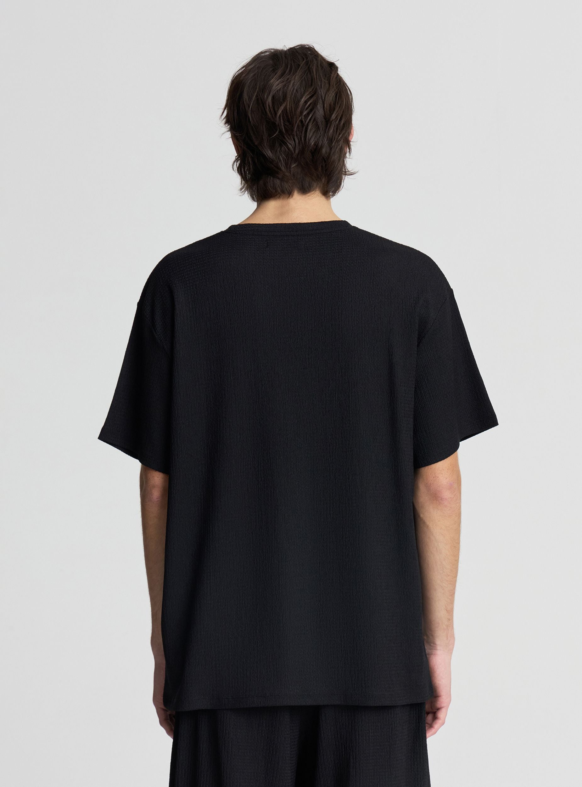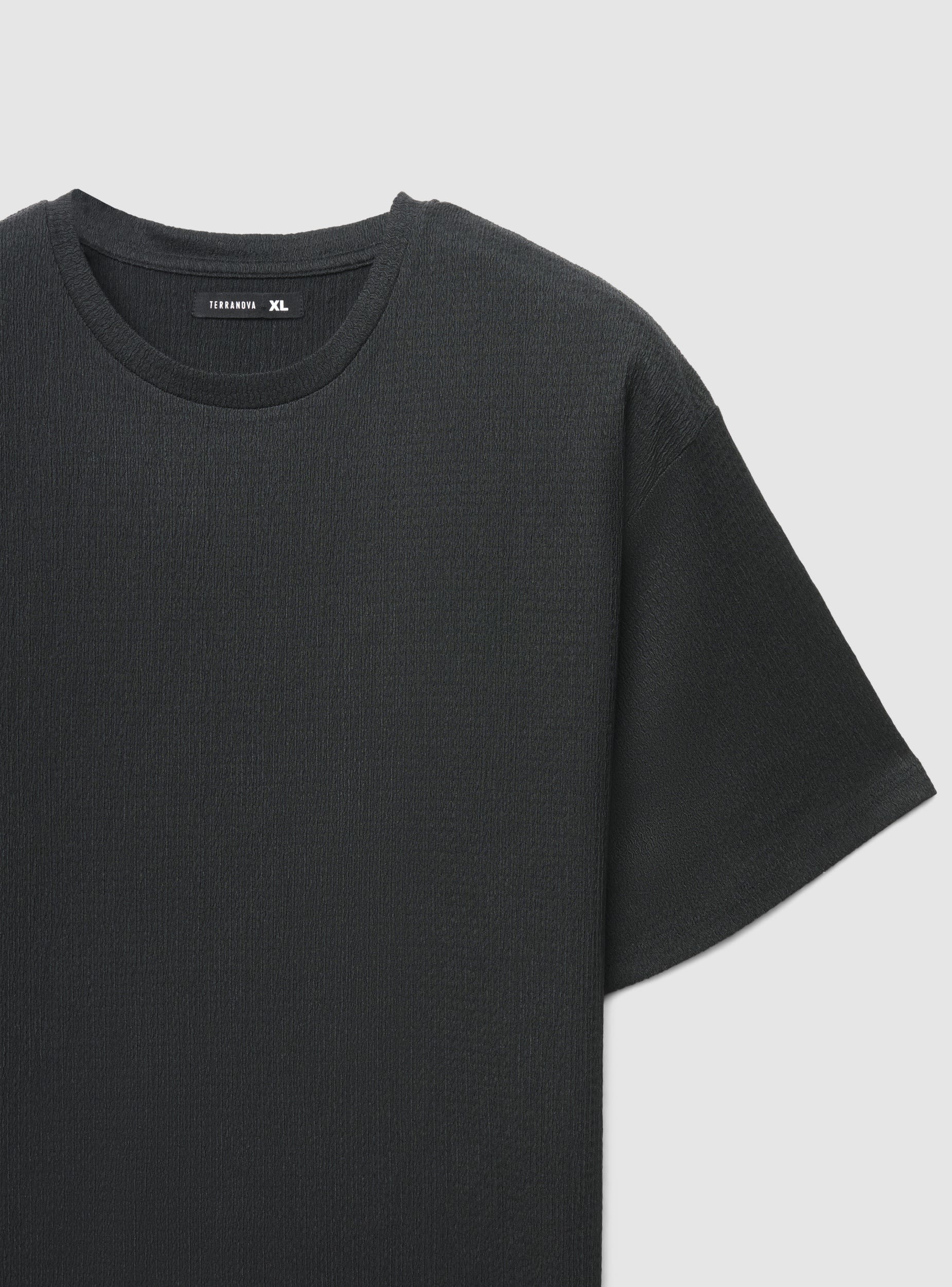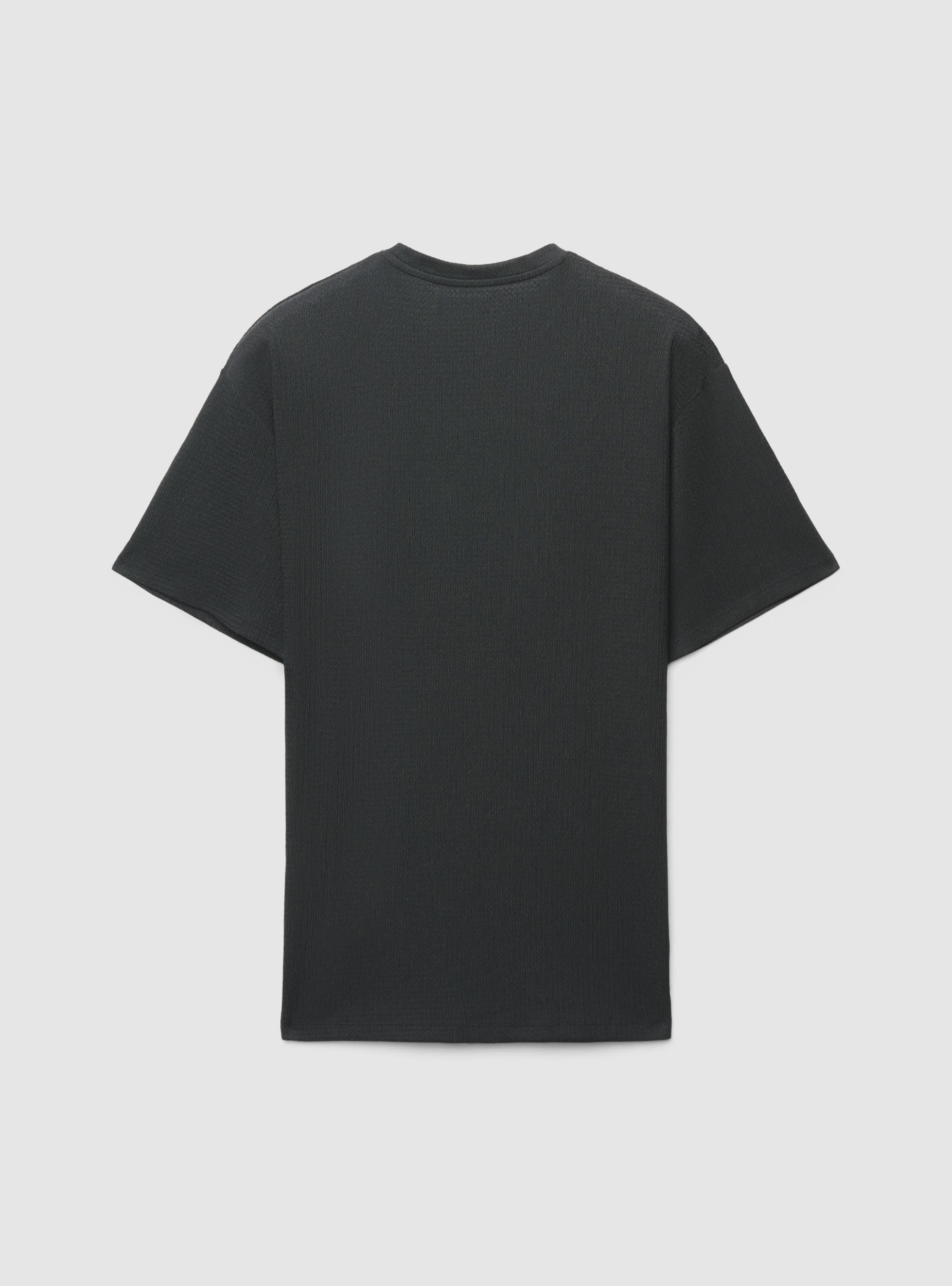 Muška jednobojna majica s okruglim izrezom i kratkim rukavima, izrađena od tkanine s teksturom koja dodaje dimenziju izgledu. Kroj je regularan, idealan za casual i urbane outfite. Savršena uz traperice i tenisice ili ispod lagane otvorene košulje. Svestrana za svaki dan i jednostavna za kombiniranje u svako doba godine.Detalji
