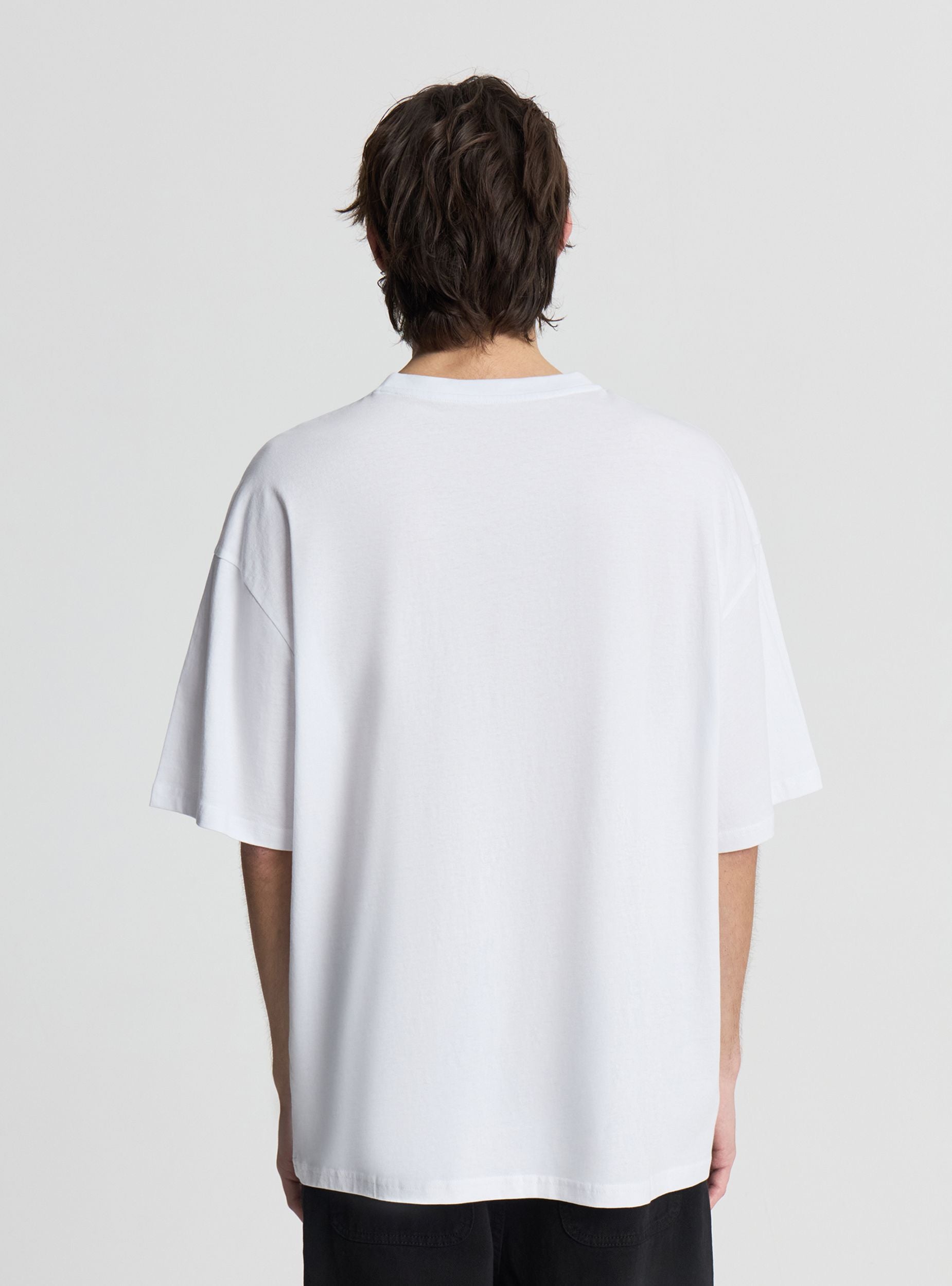 Muška majica oversize kroja s kratkim rukavima, idealna za casual i urbani izgled. Okrugli izrez i spuštena ramena, ukrašena malim tiskanim natpisom na sredini prsa. Savršena uz traperice i tenisice u slobodno vrijeme ili ispod otvorene košulje za street style dojam. Jednobojni dizajn s kontrastnim natpisom, lako se kombinira u svako godišnje doba.Detalji