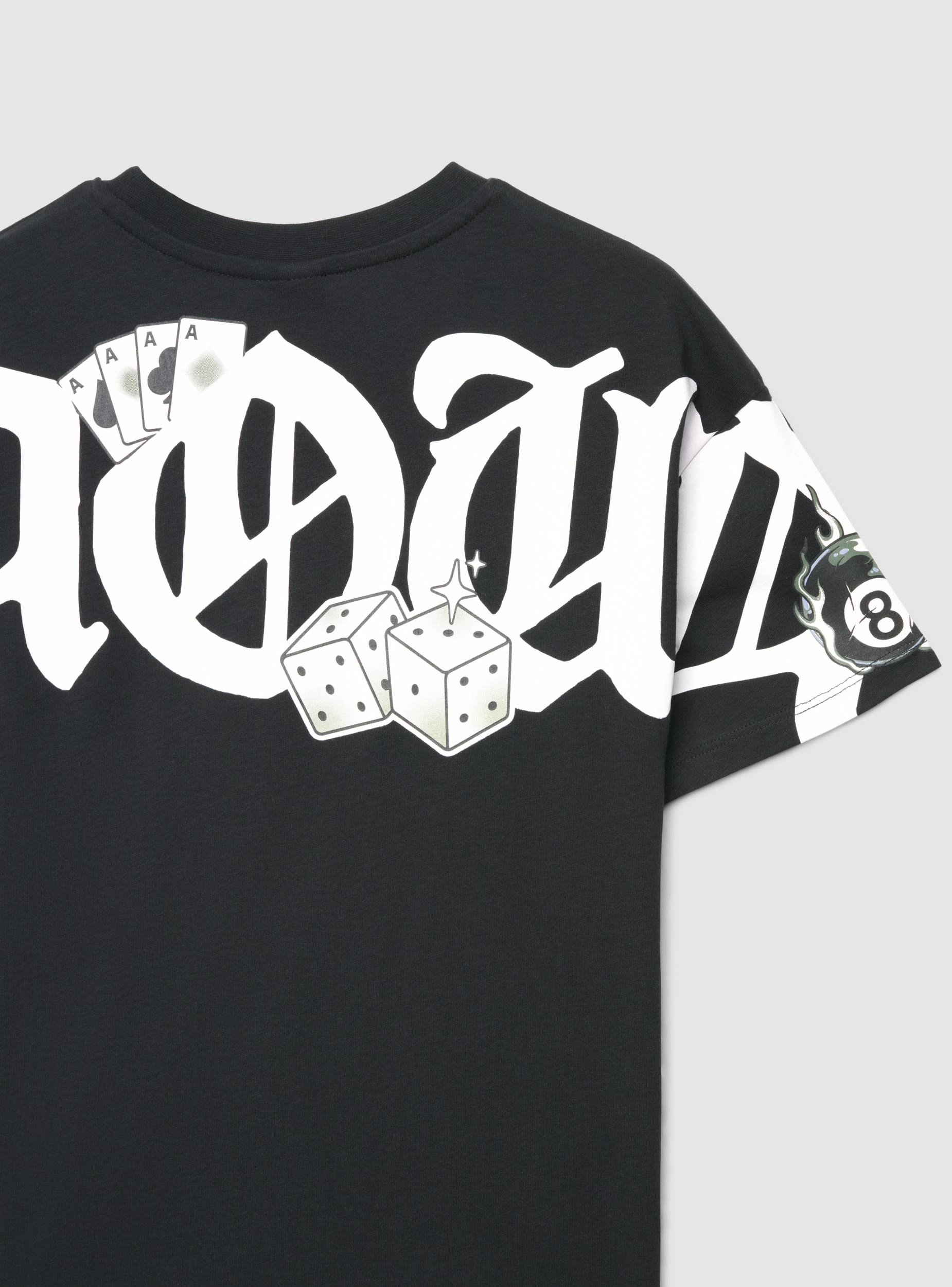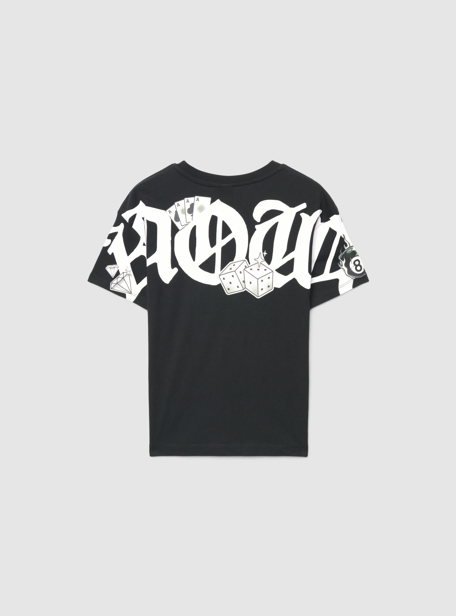 Dječja majica s malim printom sprijeda i velikim straga, okruglim izrezom i kratkim rukavima. Urbana dizajn s grafičkim detaljima poput kockica i karata koji daju karakter. Regularan kroj koji se lako kombinira s trapericama ili kratkim hlačama za školu i slobodno vrijeme. Savršena ispod dukserica ili laganih jakni za svakodnevne kombinacije.Detalji
