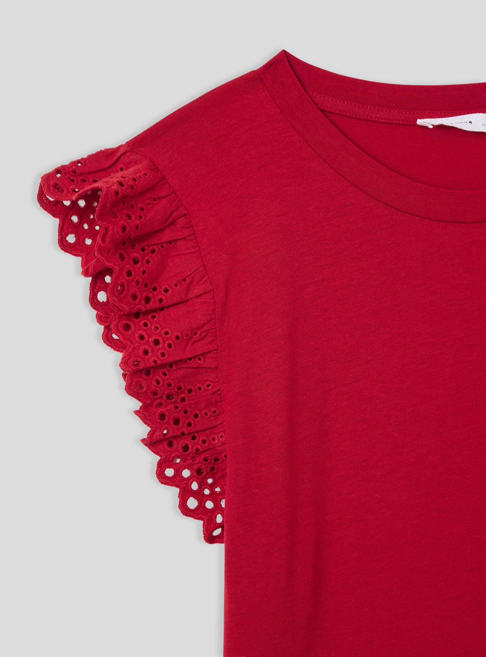 Ženska majica jednobojna s rukavima u obliku krila. Ovaj model ima ženstveni i rafinirani stil, savršen za dodavanje daška elegancije ležernom izgledu. Idealna je za nošenje tijekom slobodnog vremena ili na neformalnim prilikama.Detalji